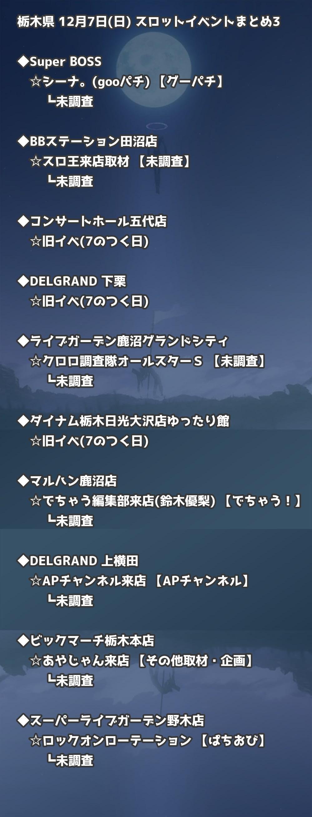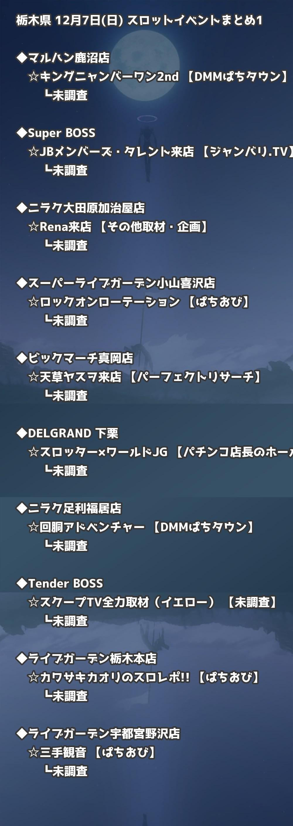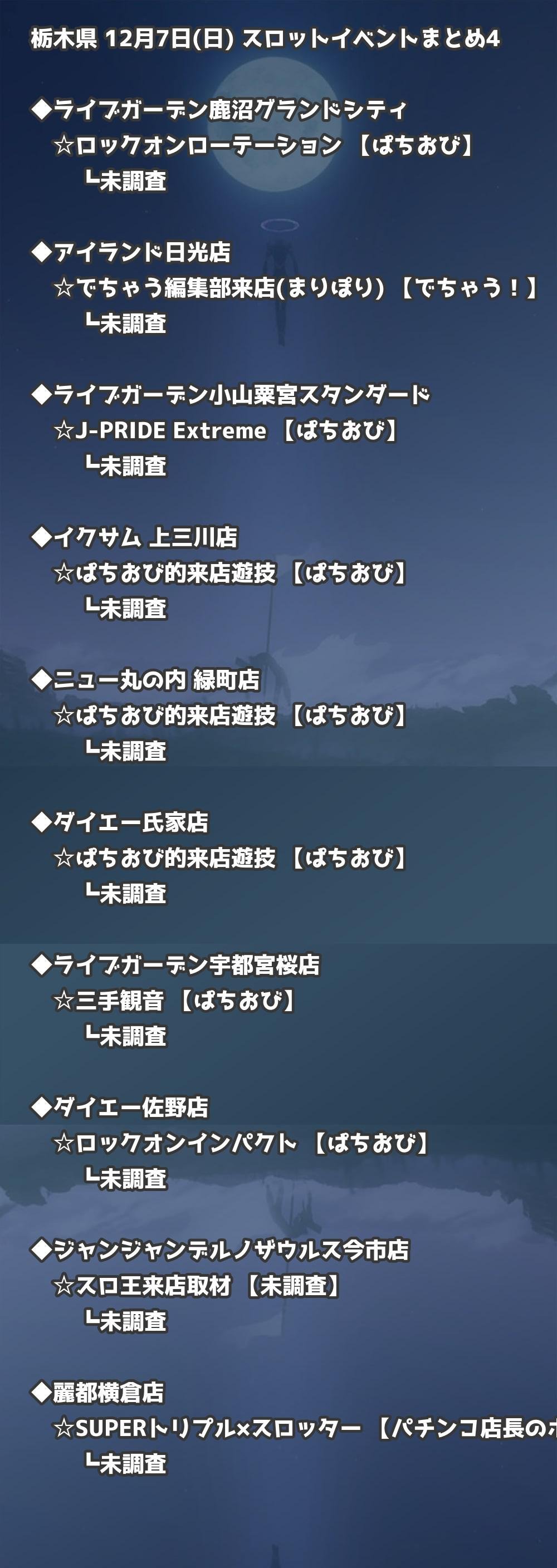 【栃木県】12月7日(日) パチンコホールイベント取材まとめ記事です。