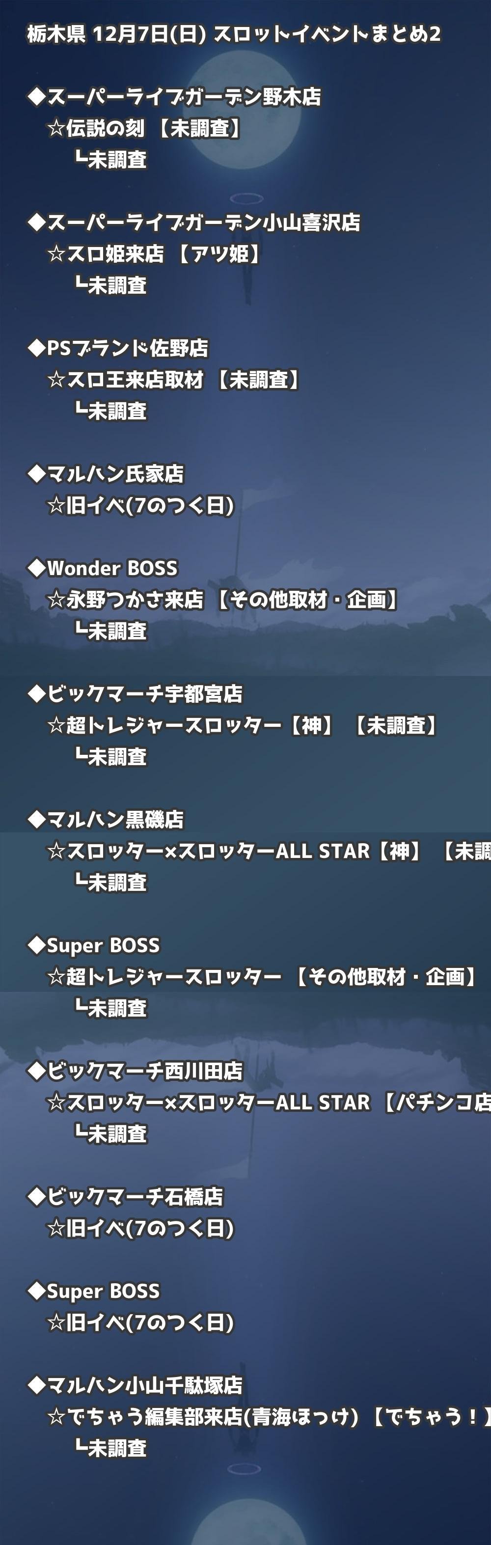 ※店舗結果掲載済 【栃木】12月7日(日) 今日のスロット・パチンコ激熱イベント取材まとめ