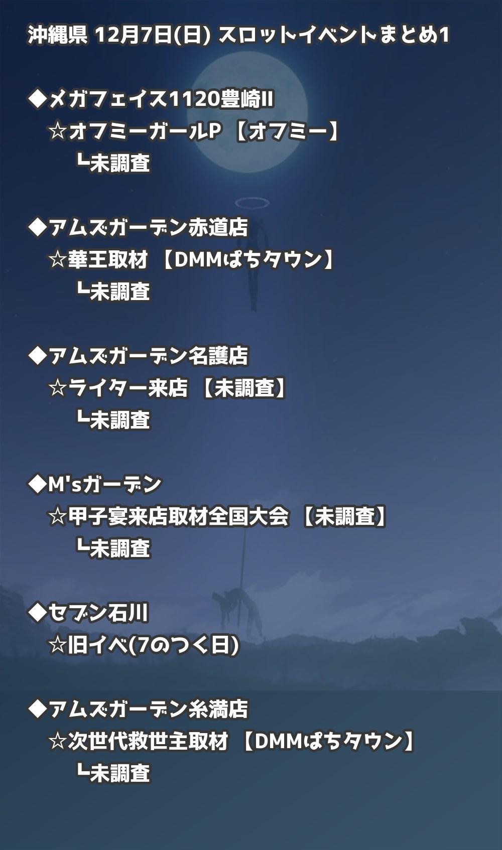 【沖縄県】12月7日(日) パチンコホールイベント取材まとめ記事です。