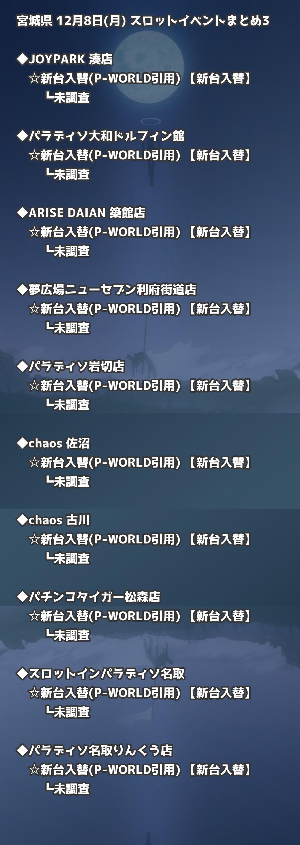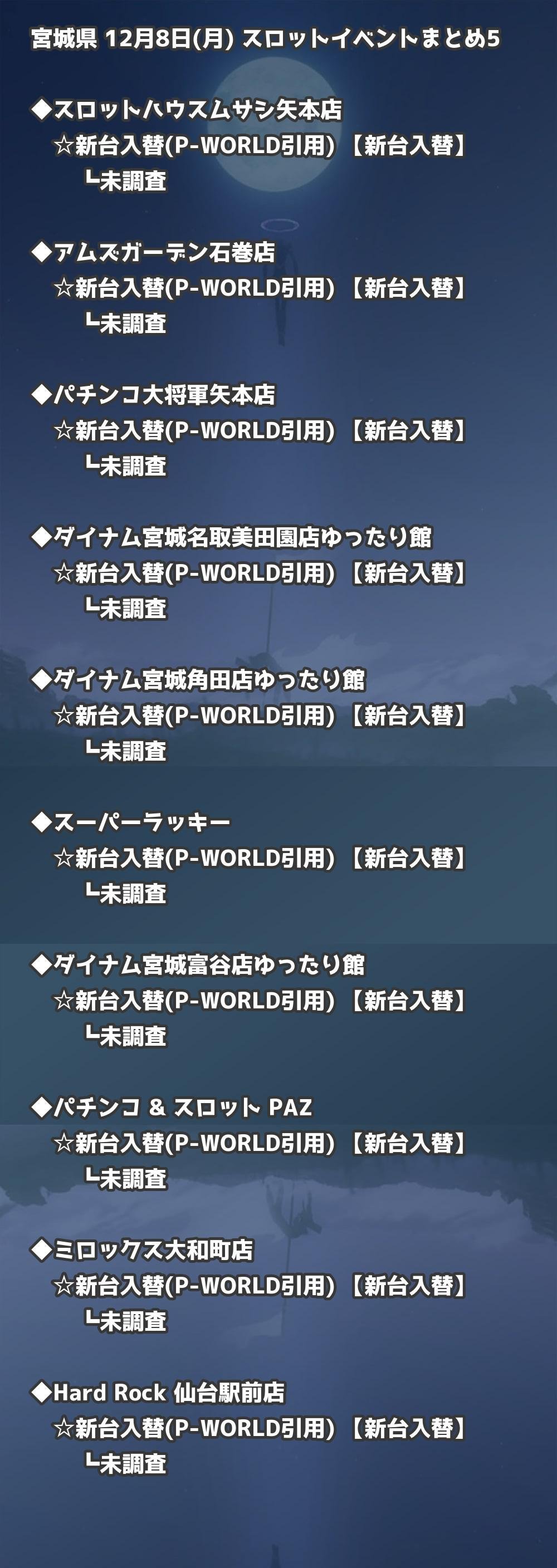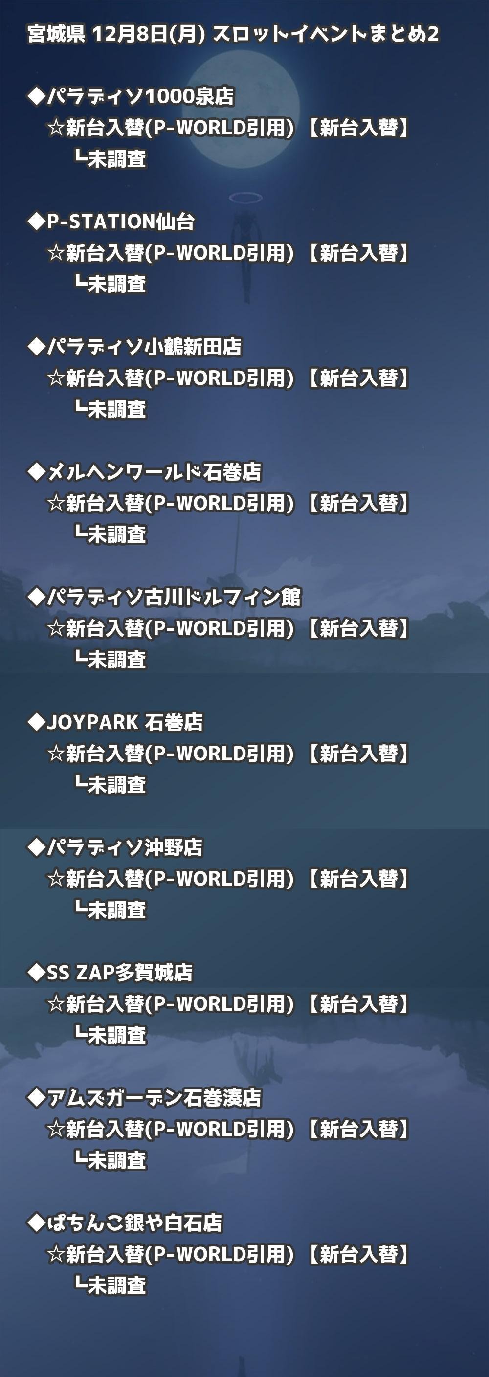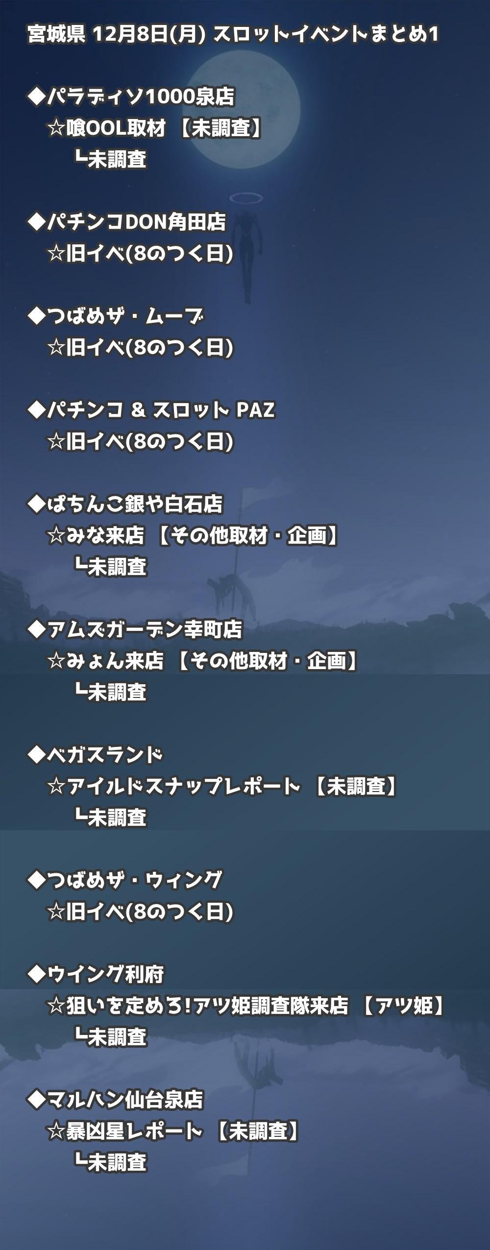 【宮城県】12月8日(月) パチンコホールイベント取材まとめ記事です。