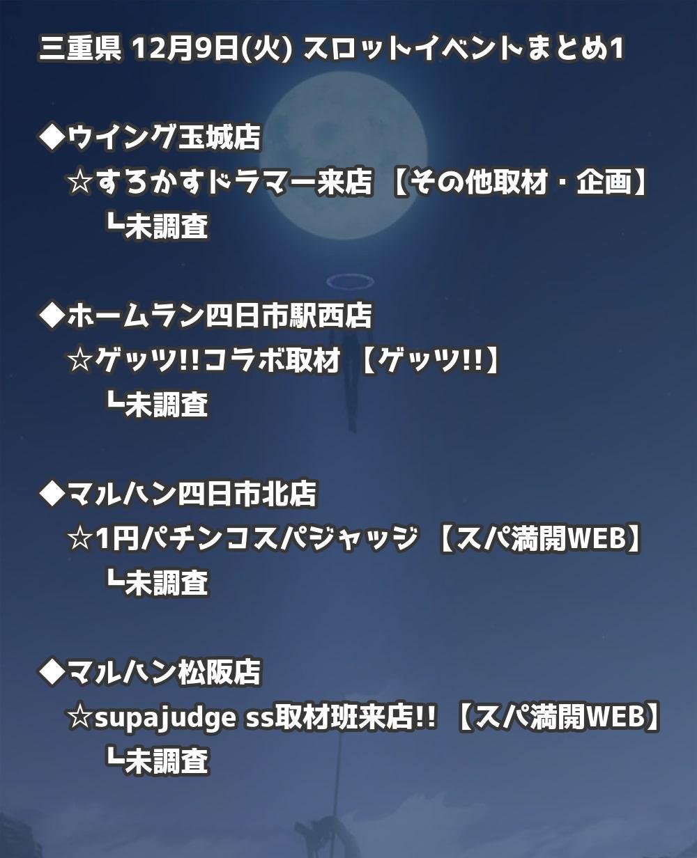 【三重県】12月9日(火) パチンコホールイベント取材まとめ記事です。