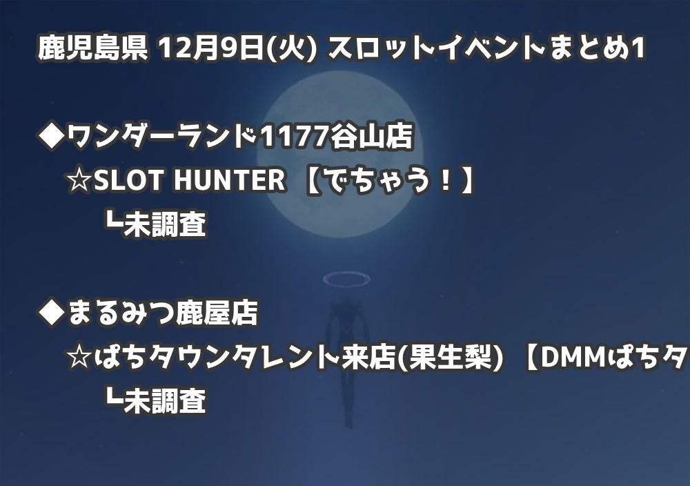 【鹿児島県】12月9日(火) パチンコホールイベント取材まとめ記事です。