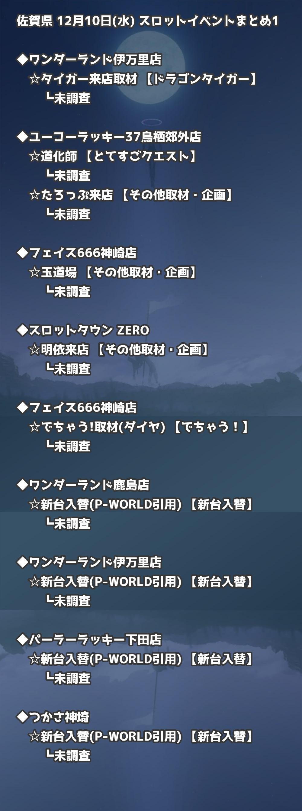 📊 佐賀県 12月10日(水) 勝てるパチンコ・スロット取材店舗一覧|おすすめ順