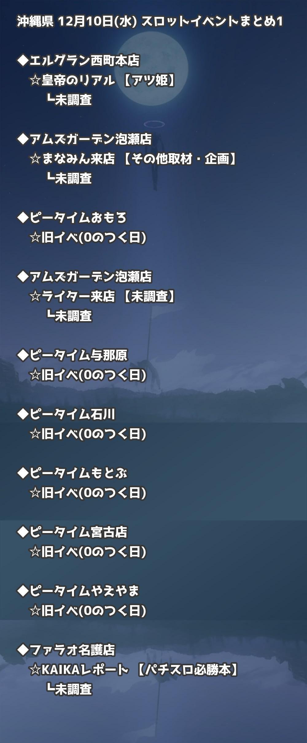 【沖縄県】12月10日(水) パチンコホールイベント取材まとめ記事です。