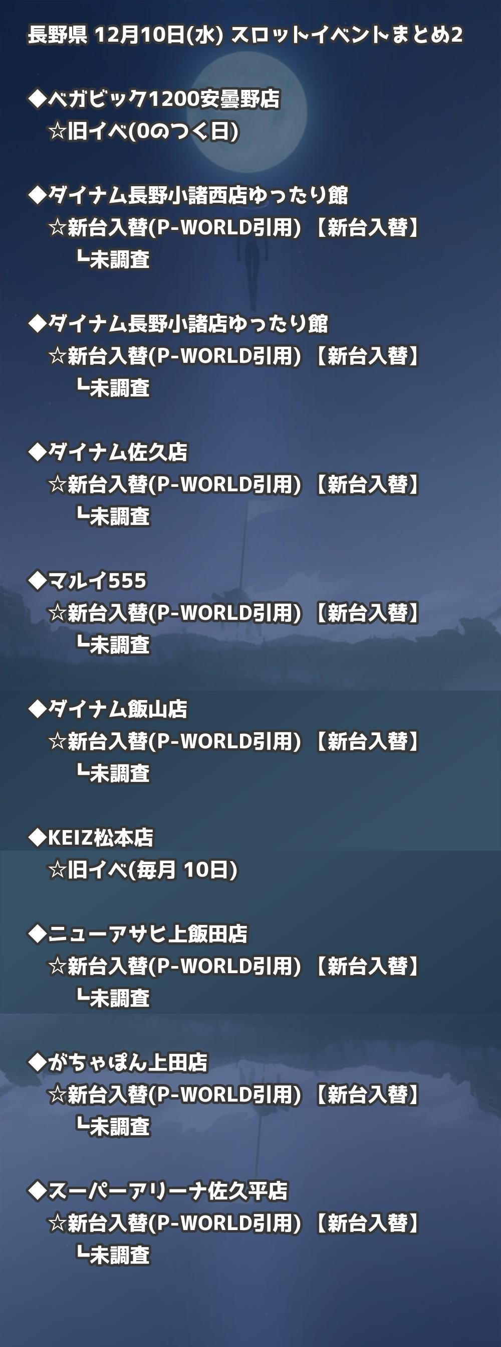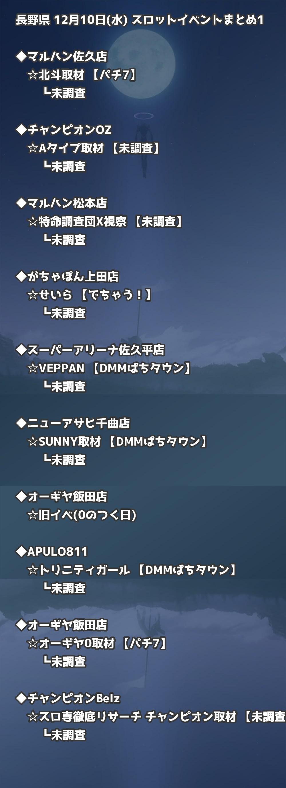 📊 長野県 12月10日(水) 勝てるパチンコ・スロット取材店舗一覧|おすすめ順
