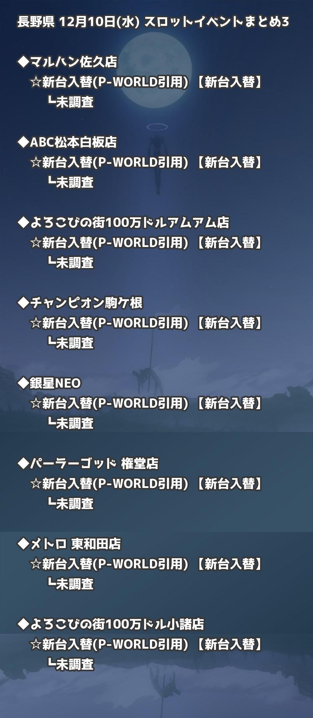 【長野県】12月10日(水) パチンコホールイベント取材まとめ記事です。