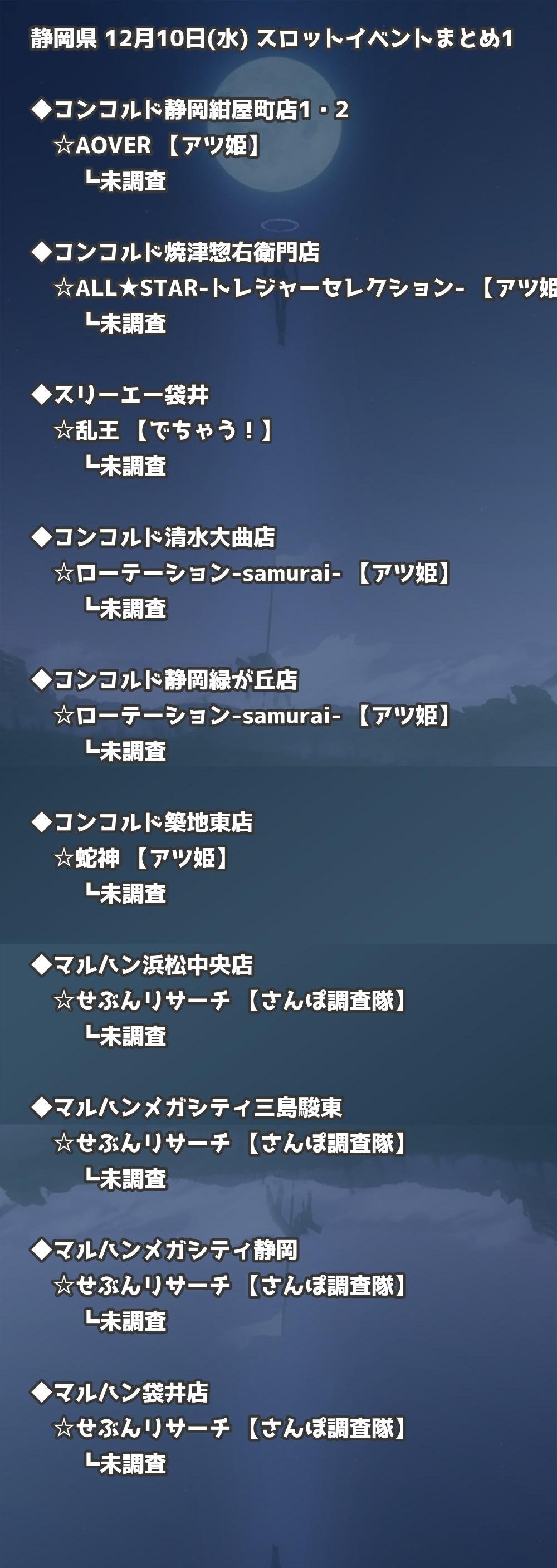 📊 静岡県 12月10日(水) 勝てるパチンコ・スロット取材店舗一覧|おすすめ順