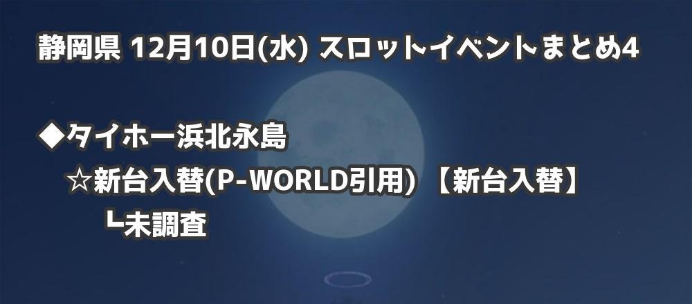 【静岡県】12月10日(水) パチンコホールイベント取材まとめ記事です。