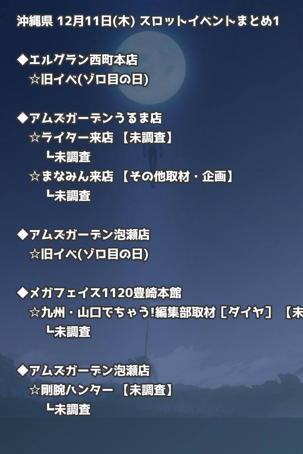 【沖縄県】12月11日(木) パチンコホールイベント取材まとめ記事です。
