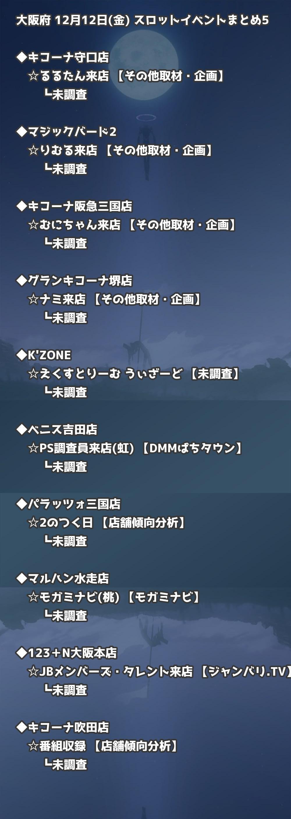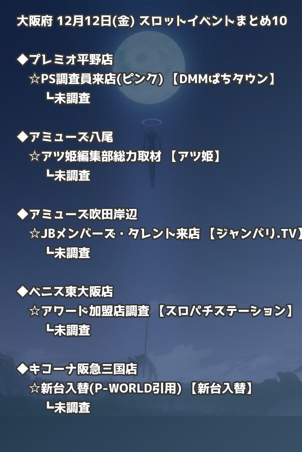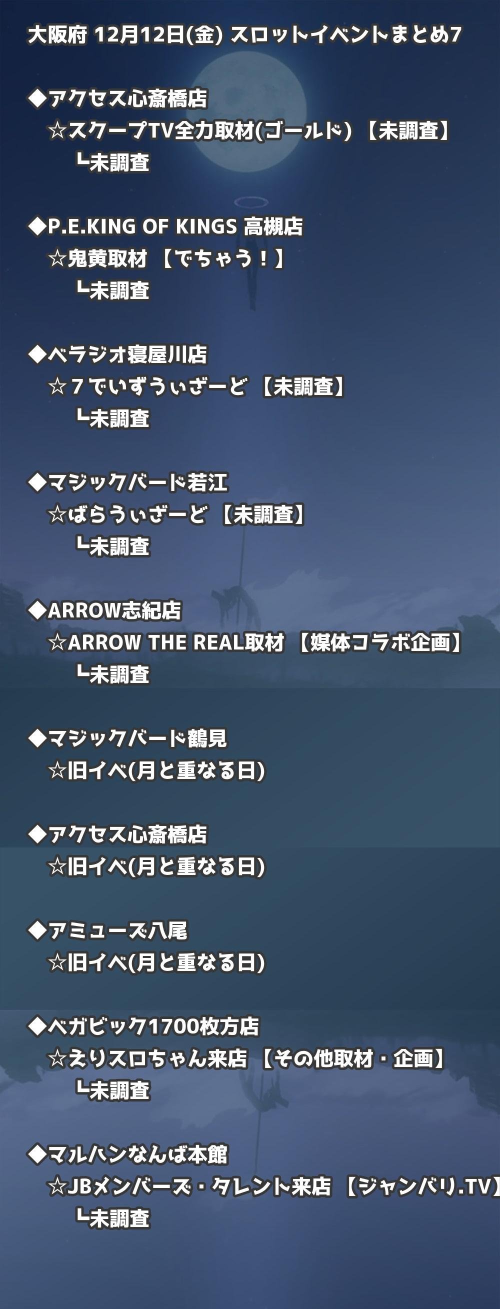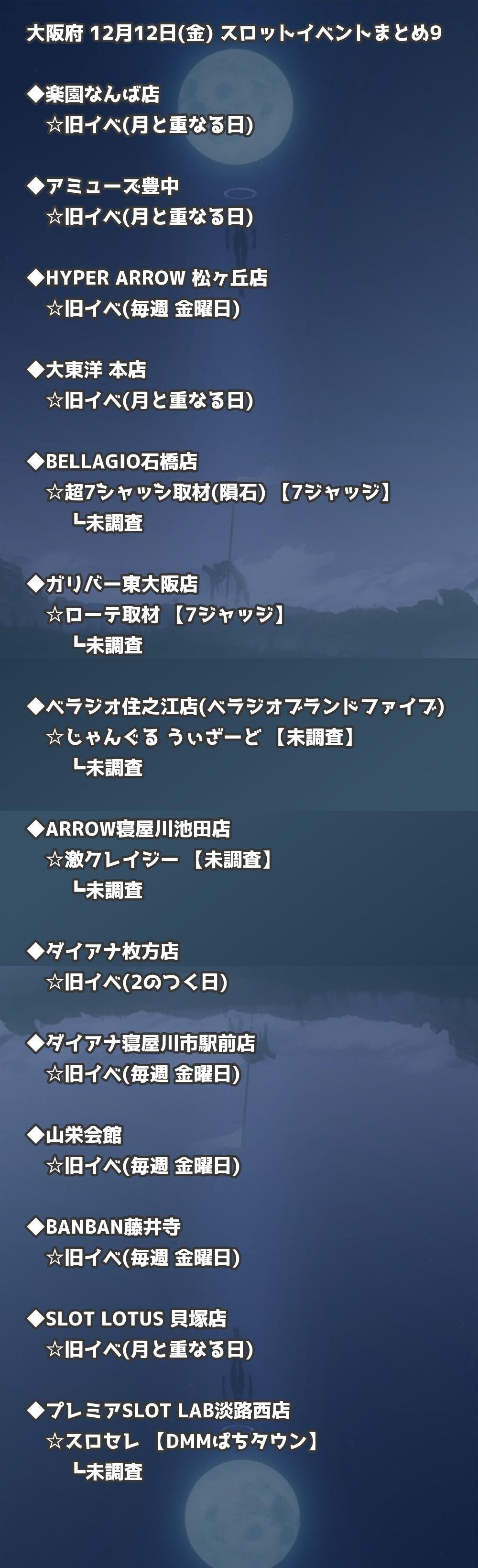 【大阪府】12月12日(金) パチンコホールイベント取材まとめ記事です。