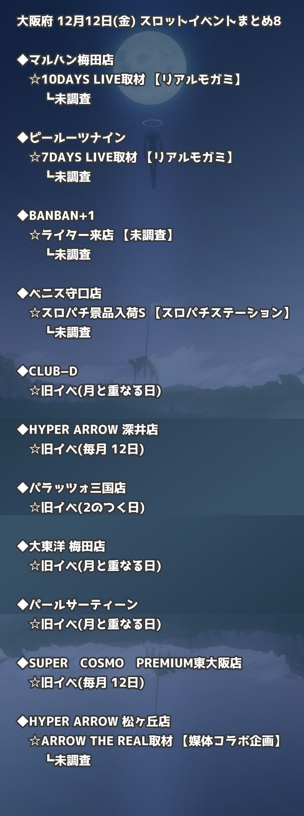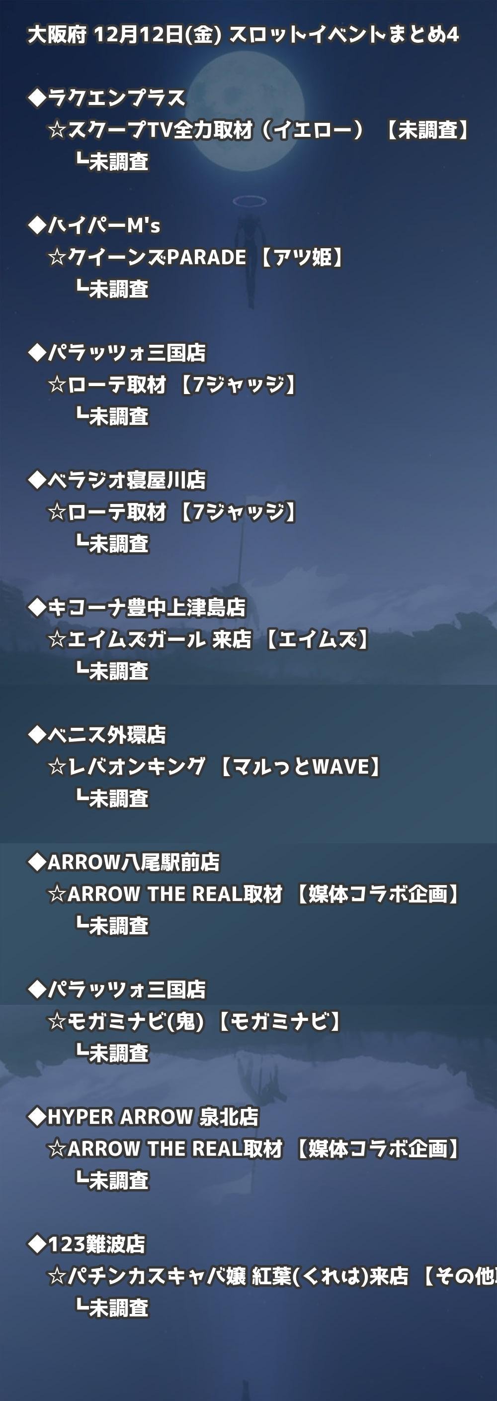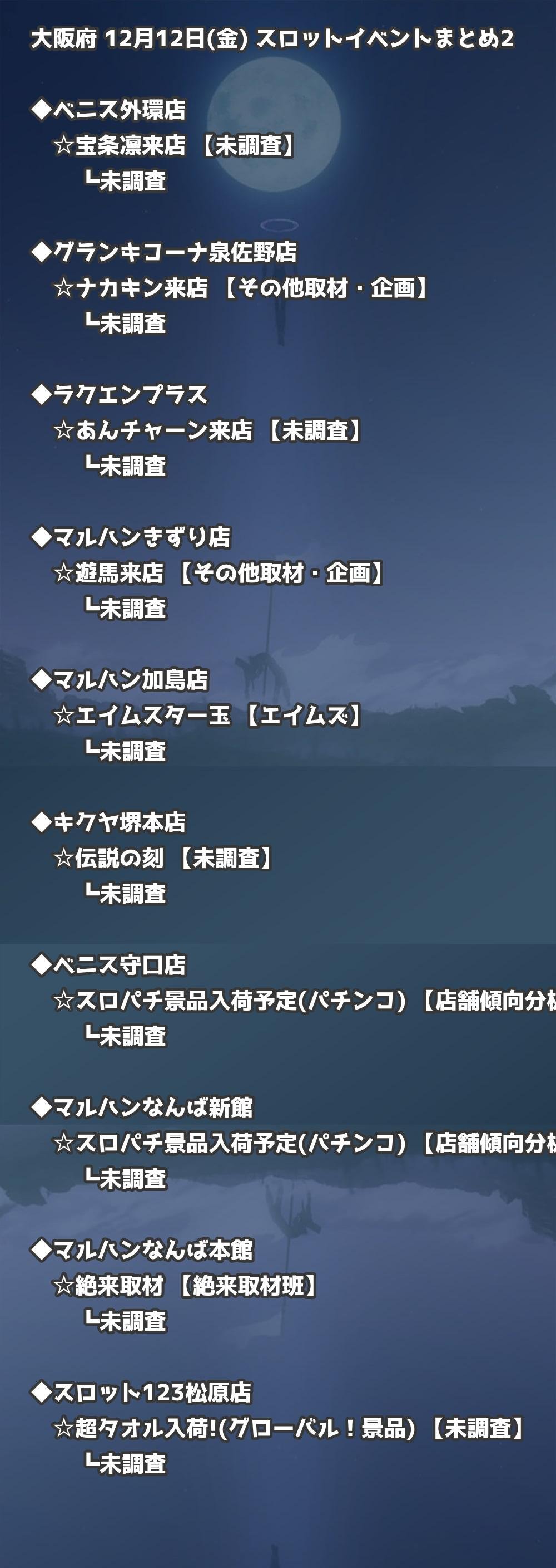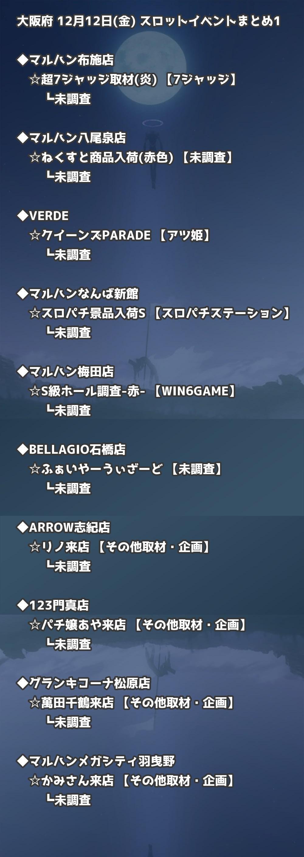 【大阪府】12月12日(金) パチンコホールイベント取材まとめ記事です。
