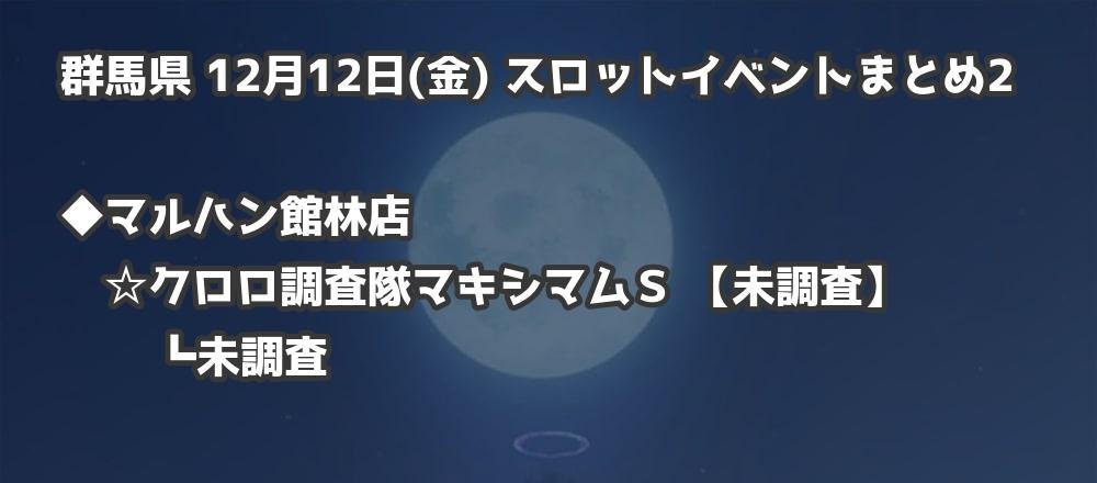 【群馬県】12月12日(金) パチンコホールイベント取材まとめ記事です。