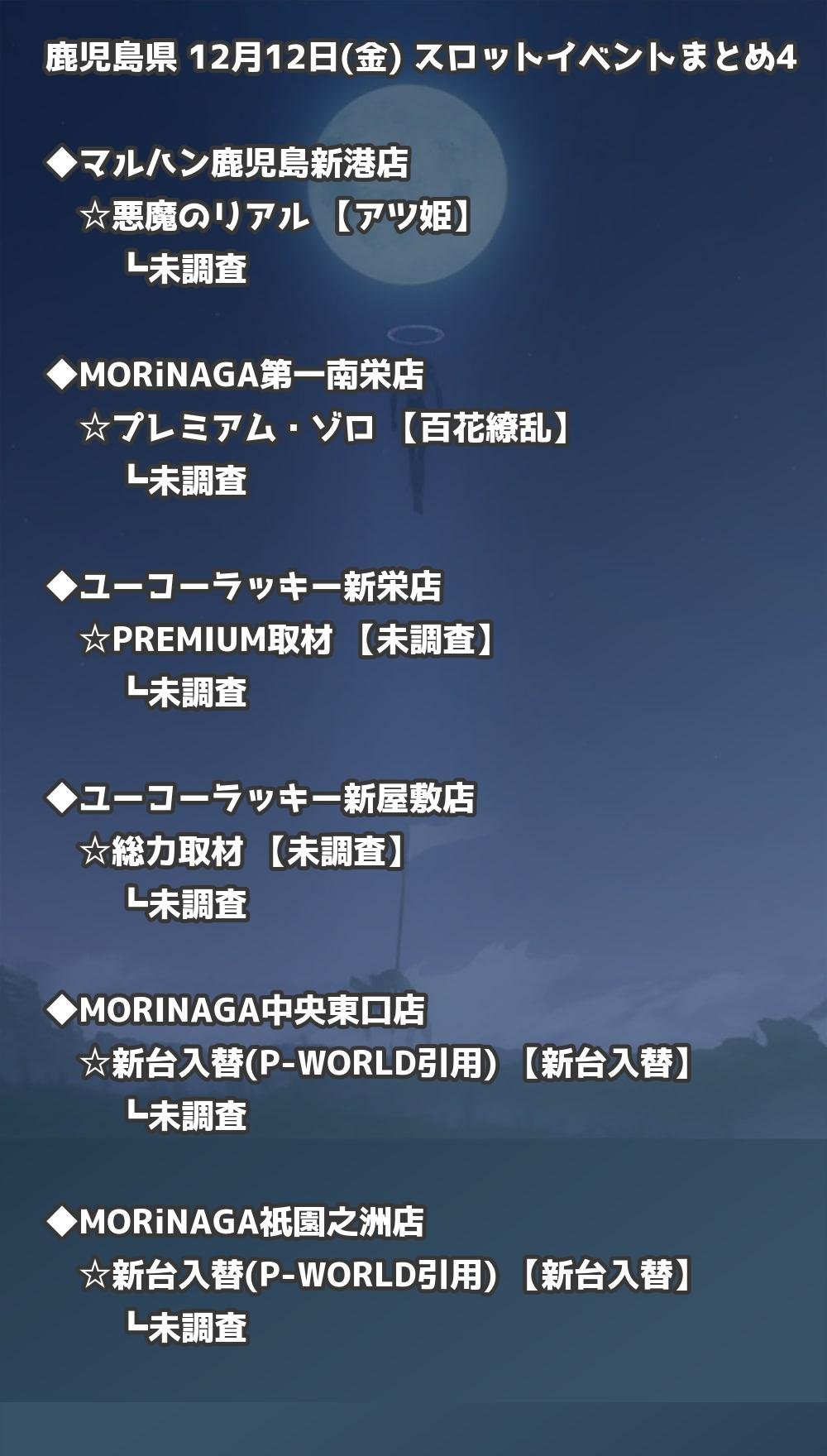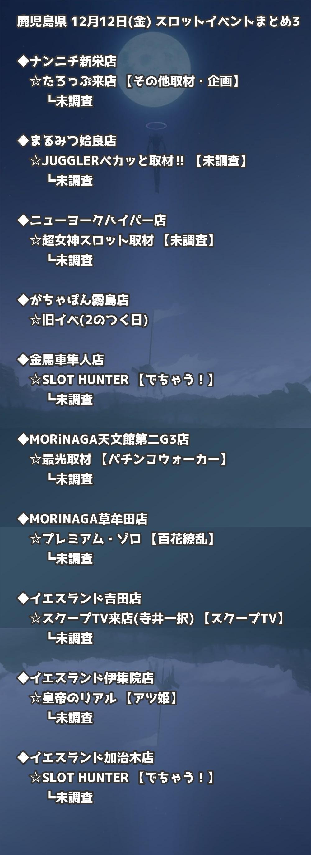 【鹿児島県】12月12日(金) パチンコホールイベント取材まとめ記事です。