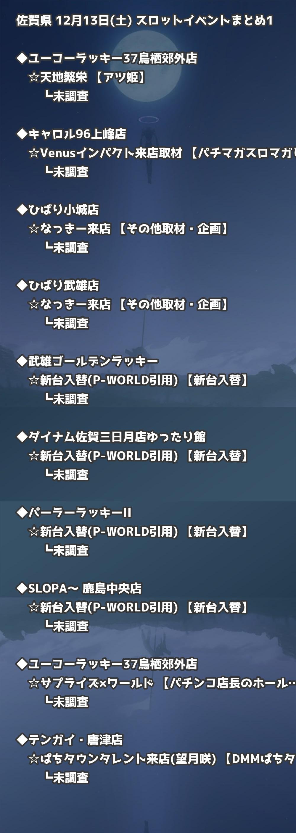 📊 佐賀県 12月13日(土) 勝てるパチンコ・スロット取材店舗一覧|おすすめ順