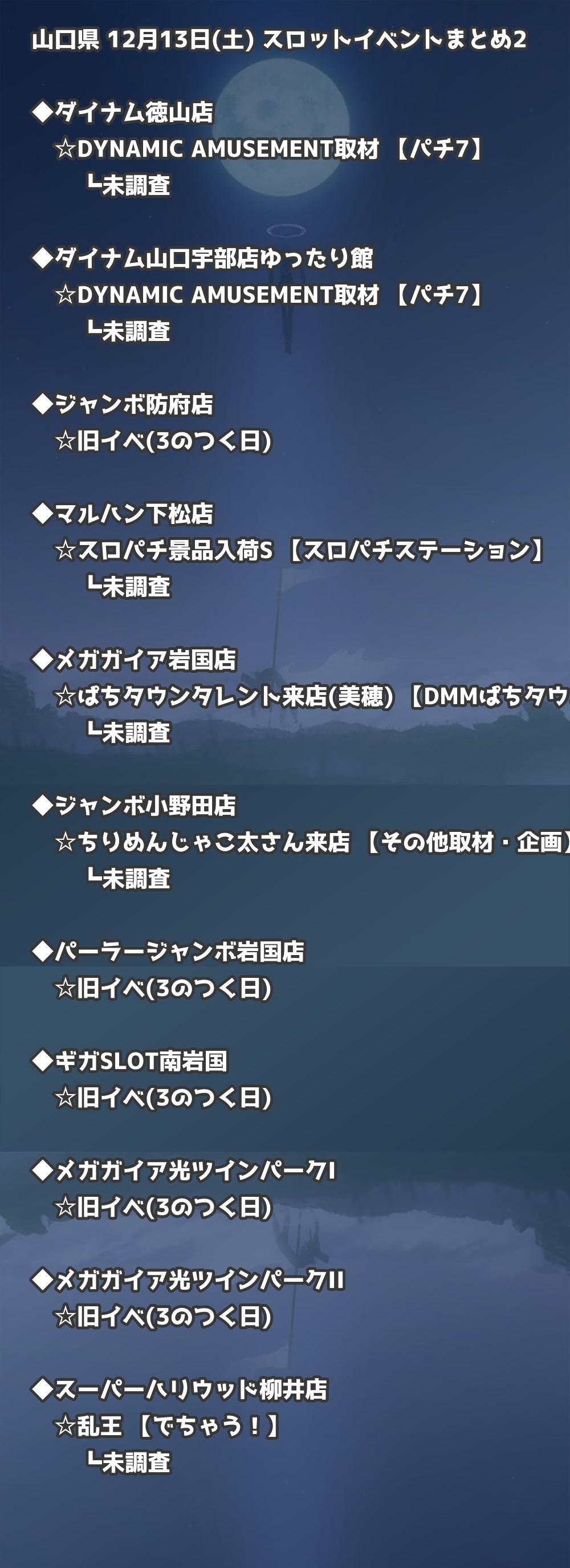 📊 山口県 12月13日(土) 勝てるパチンコ・スロット取材店舗一覧|おすすめ順