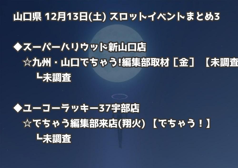 【山口県】12月13日(土) パチンコホールイベント取材まとめ記事です。