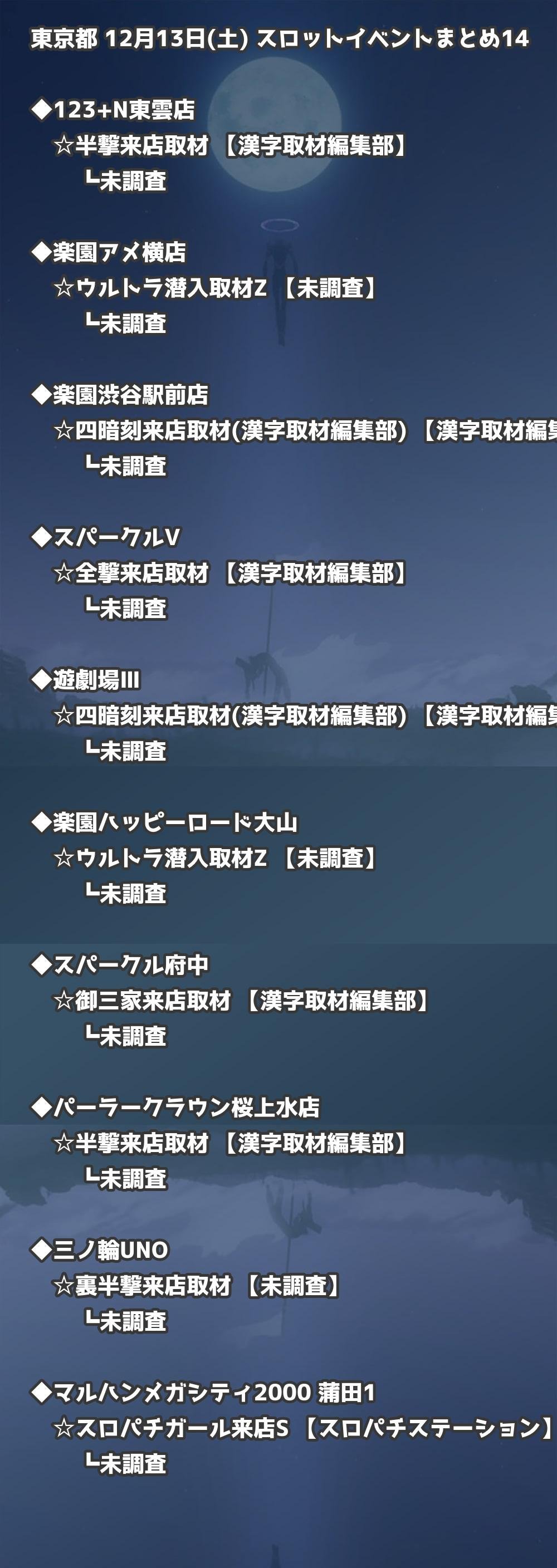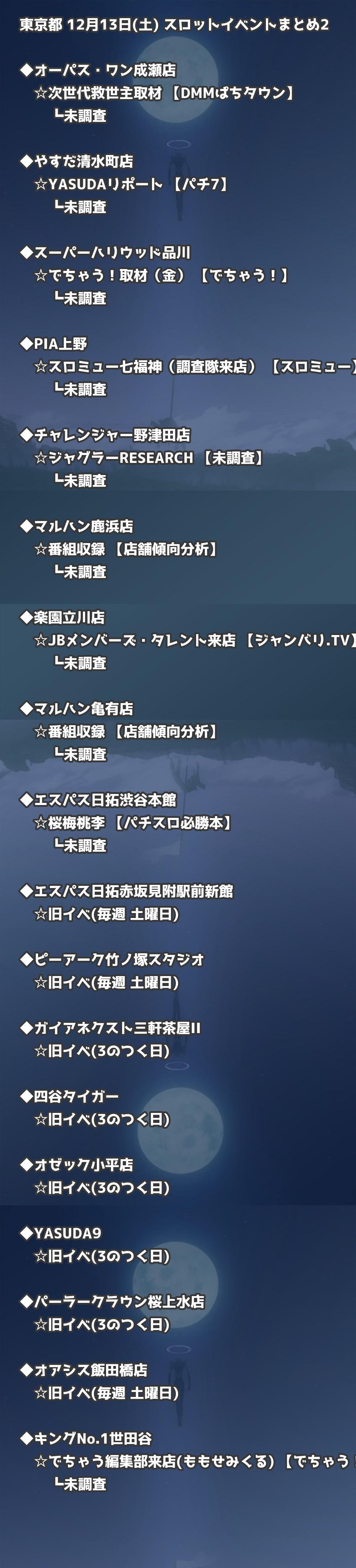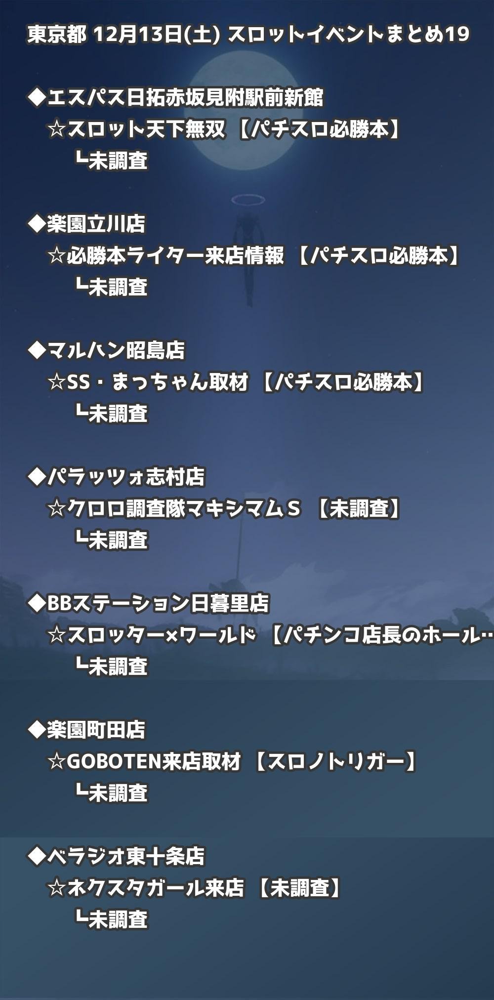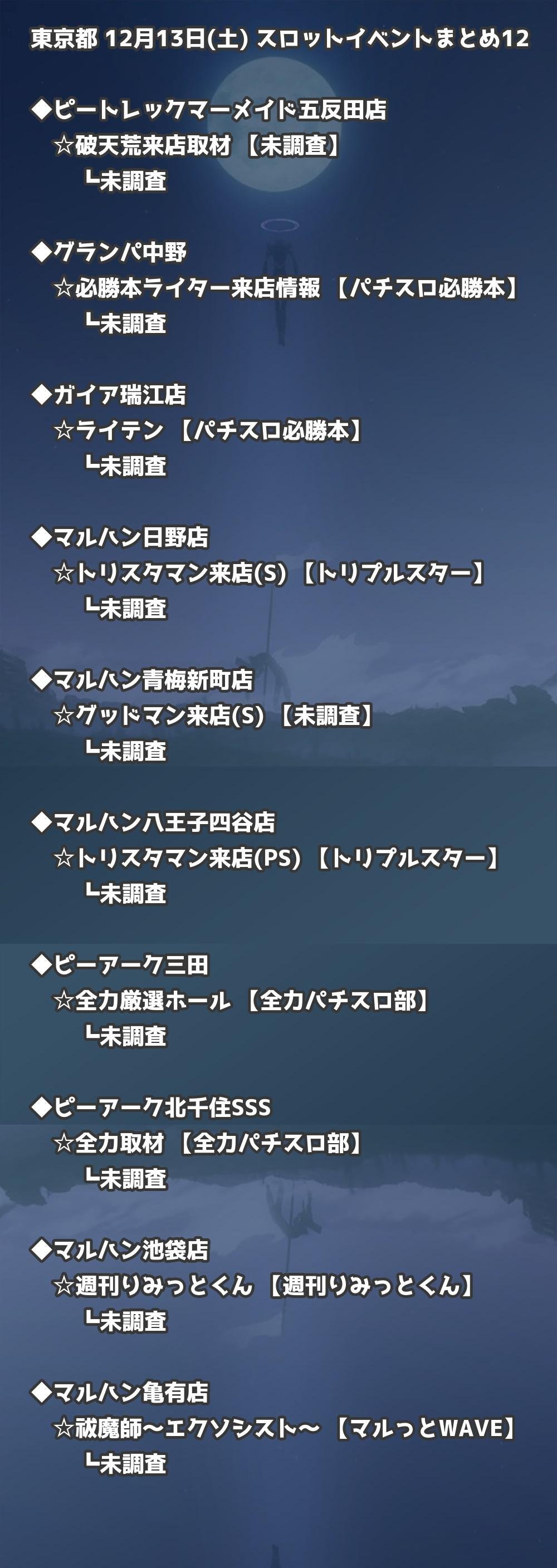 【東京都】12月13日(土) パチンコホールイベント取材まとめ記事です。