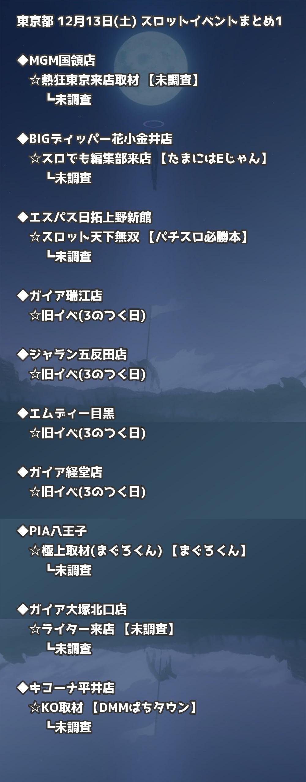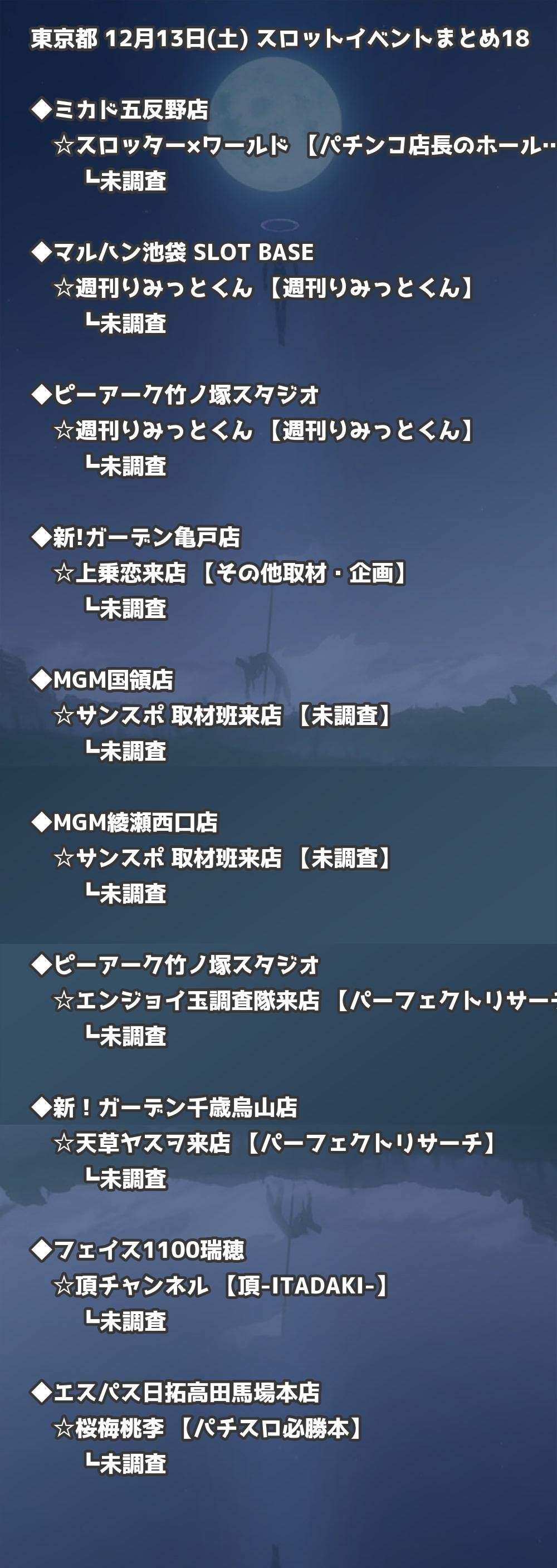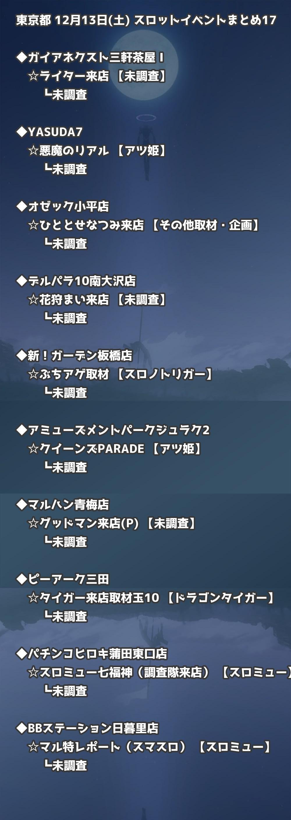【東京都】12月13日(土) パチンコホールイベント取材まとめ記事です。