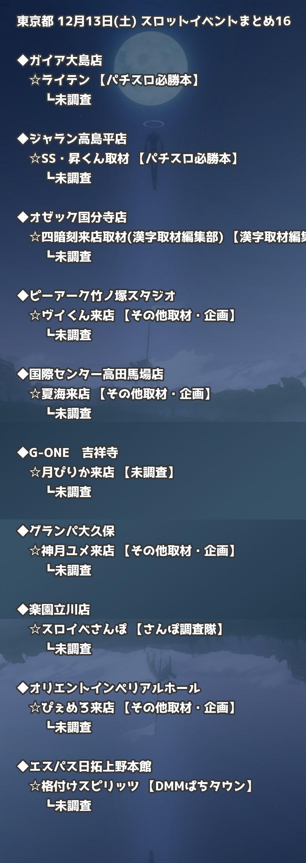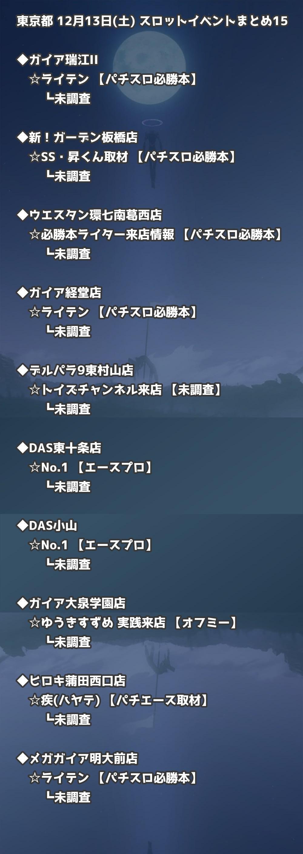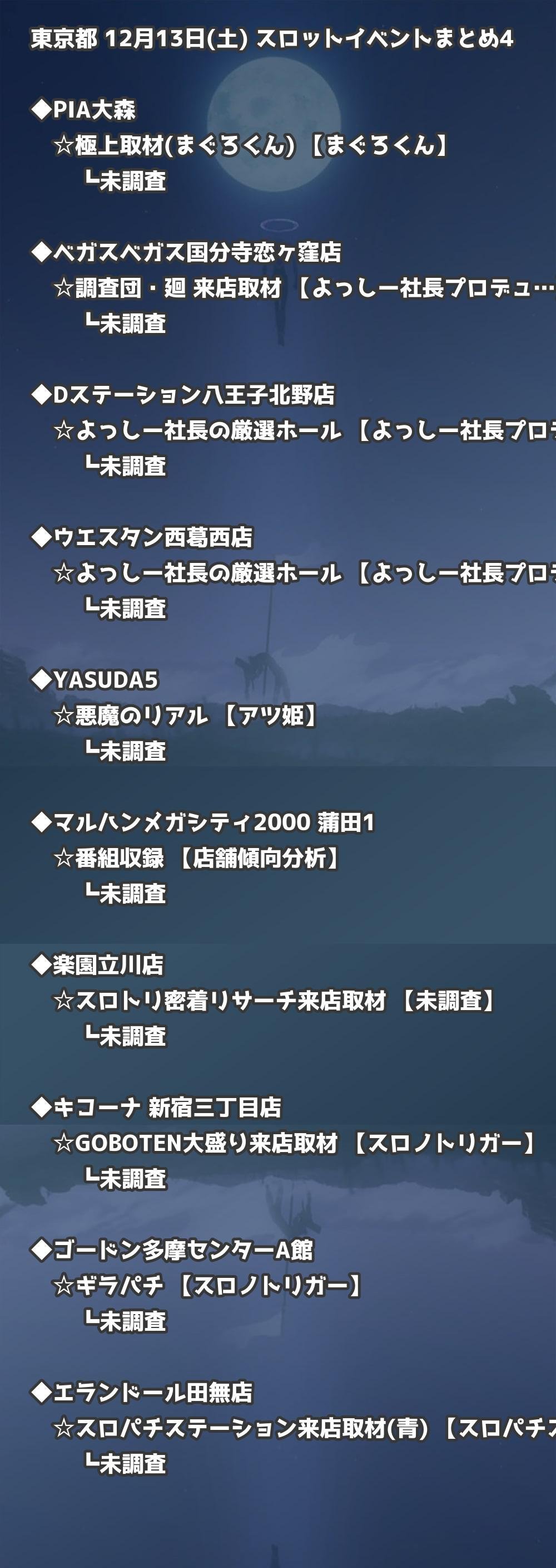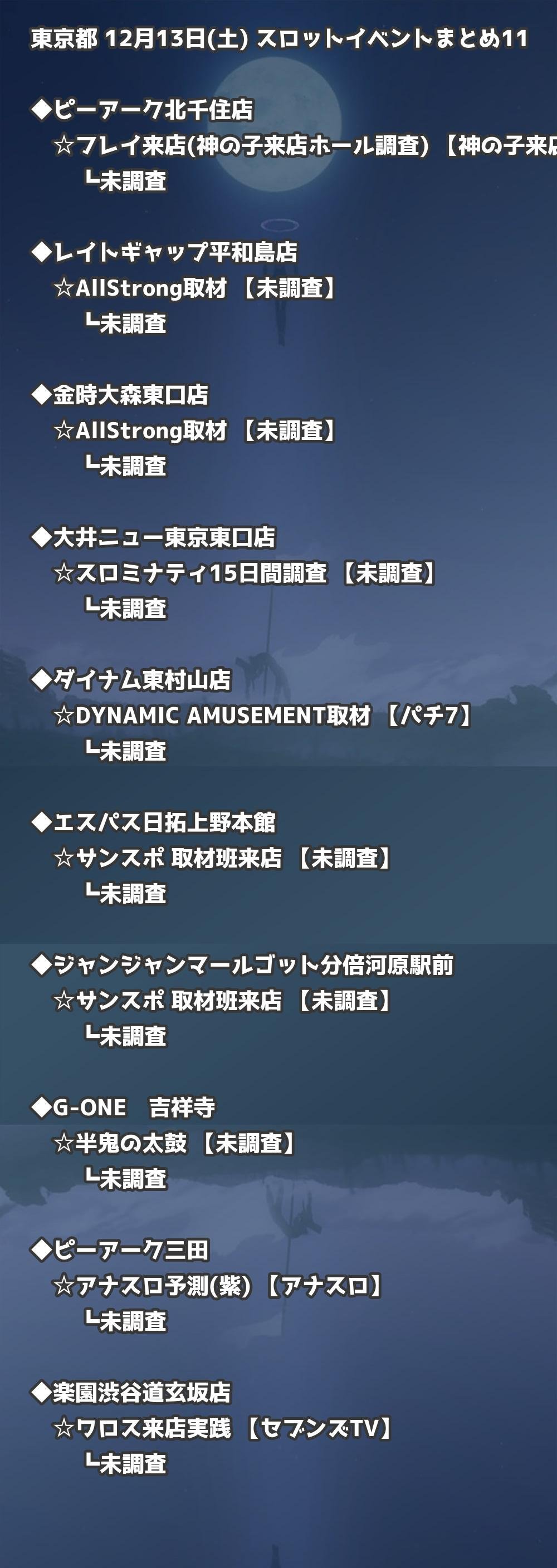【東京都】12月13日(土) パチンコホールイベント取材まとめ記事です。