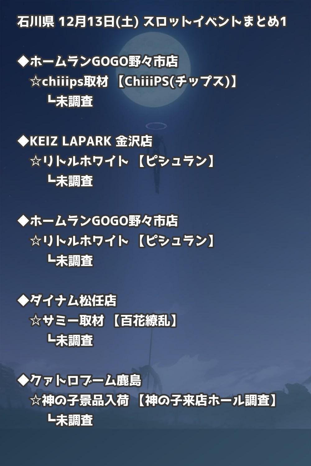 【石川県】12月13日(土) パチンコホールイベント取材まとめ記事です。