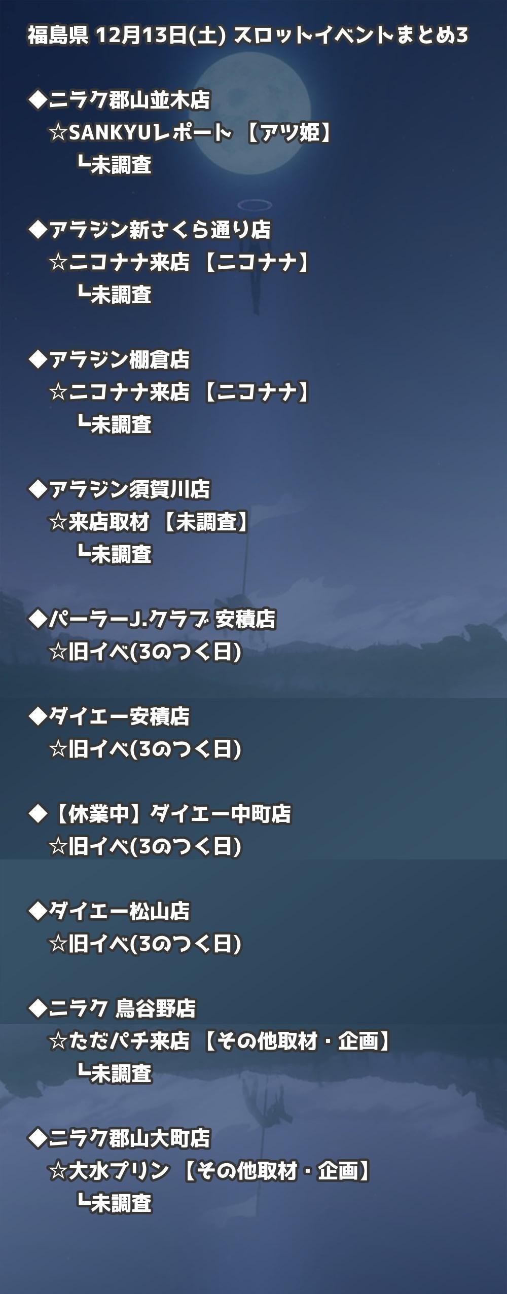 📊 福島県 12月13日(土) 勝てるパチンコ・スロット取材店舗一覧|おすすめ順