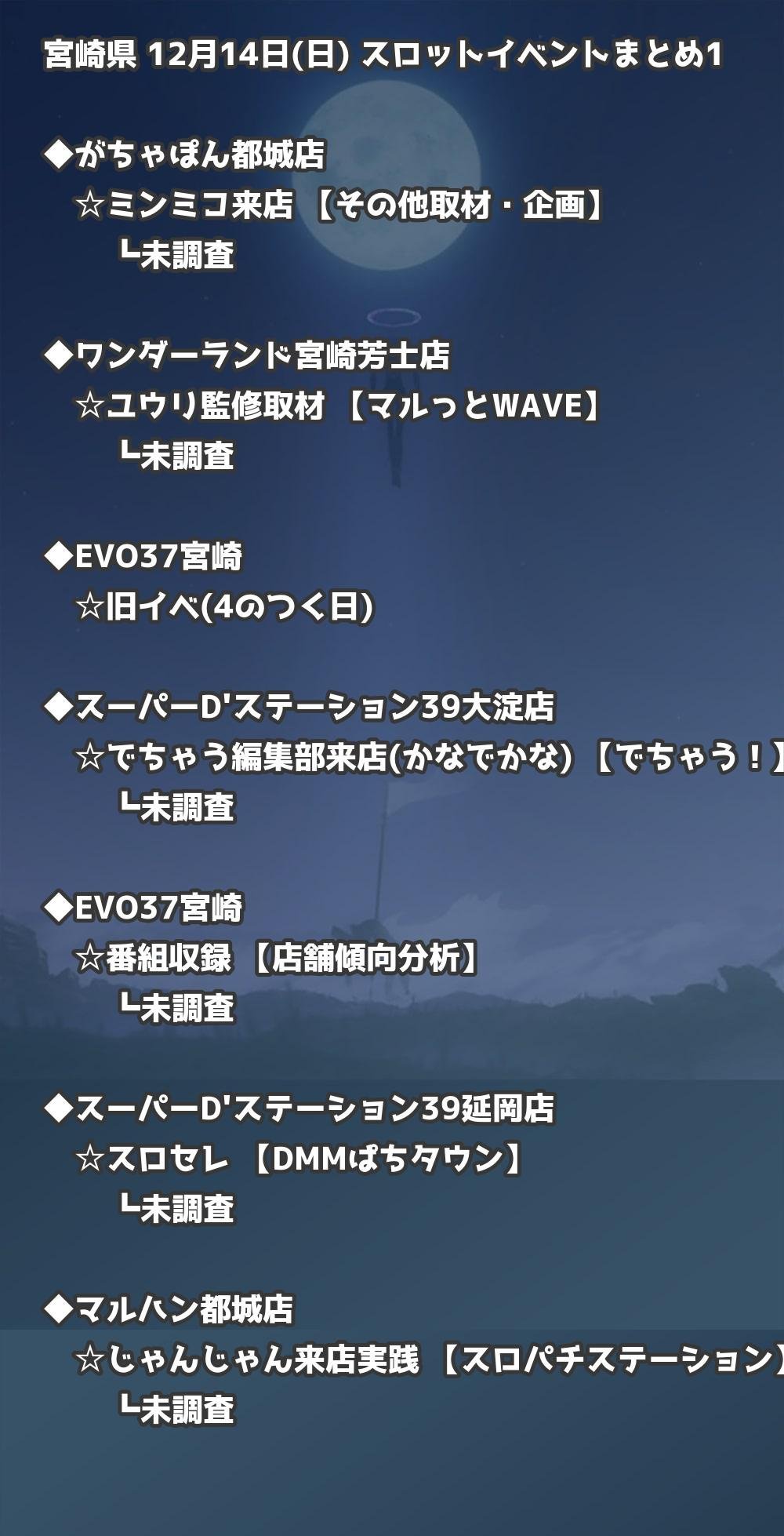📊 宮崎県 12月14日(日) 勝てるパチンコ・スロット取材店舗一覧|おすすめ順