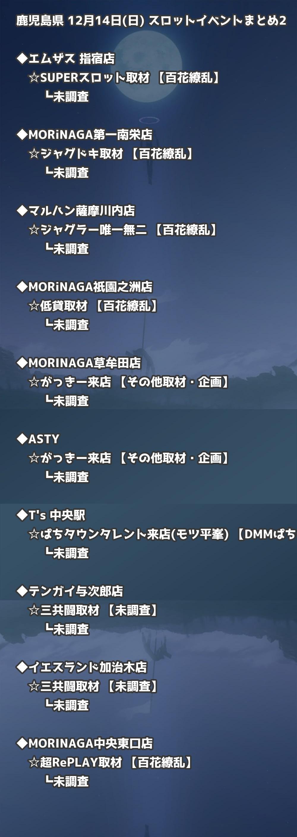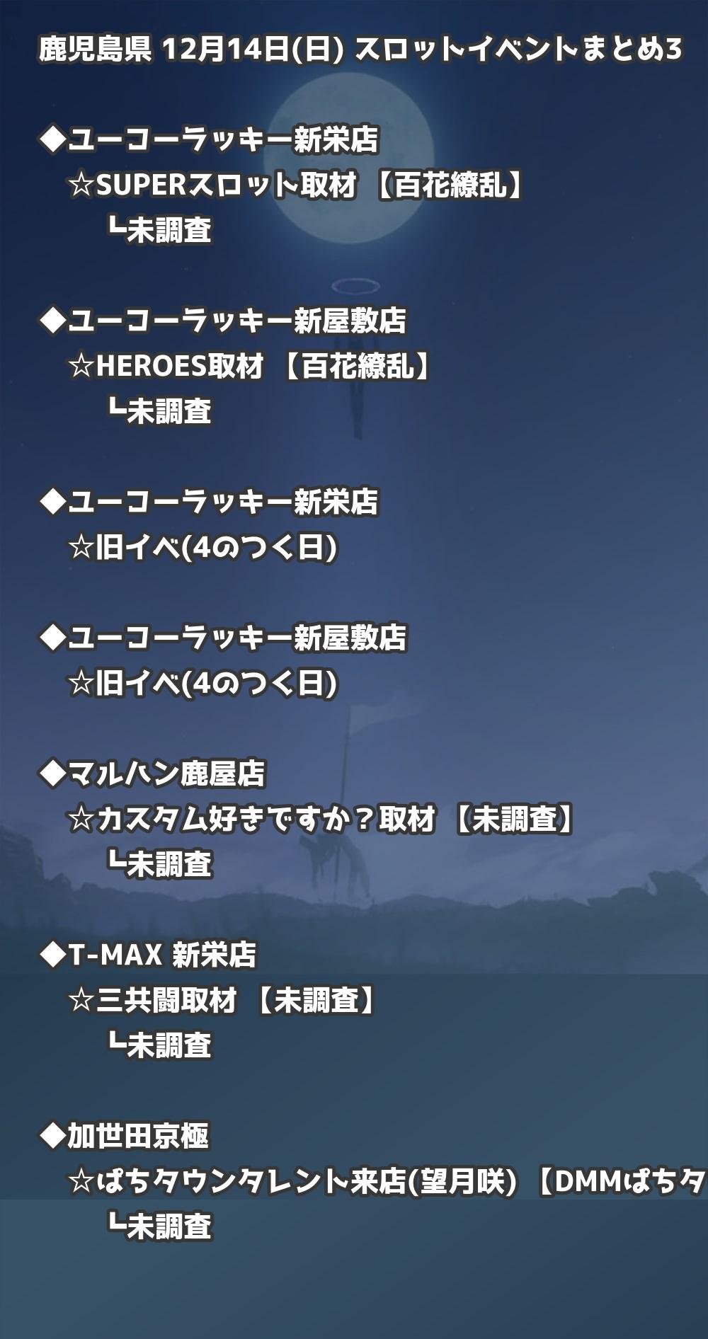 【鹿児島県】12月14日(日) パチンコホールイベント取材まとめ記事です。