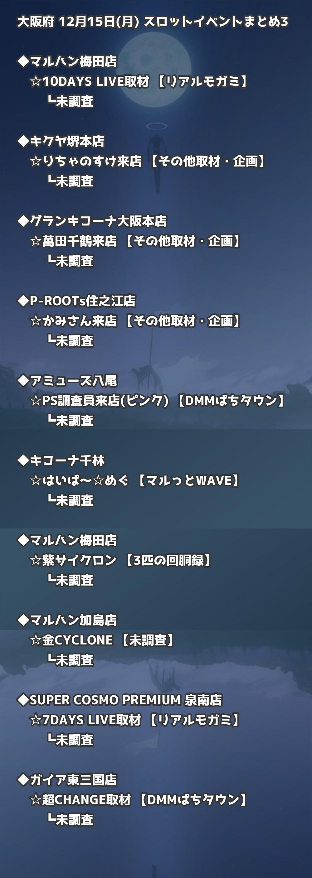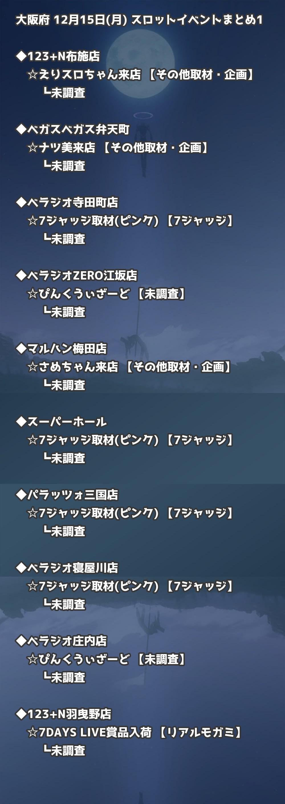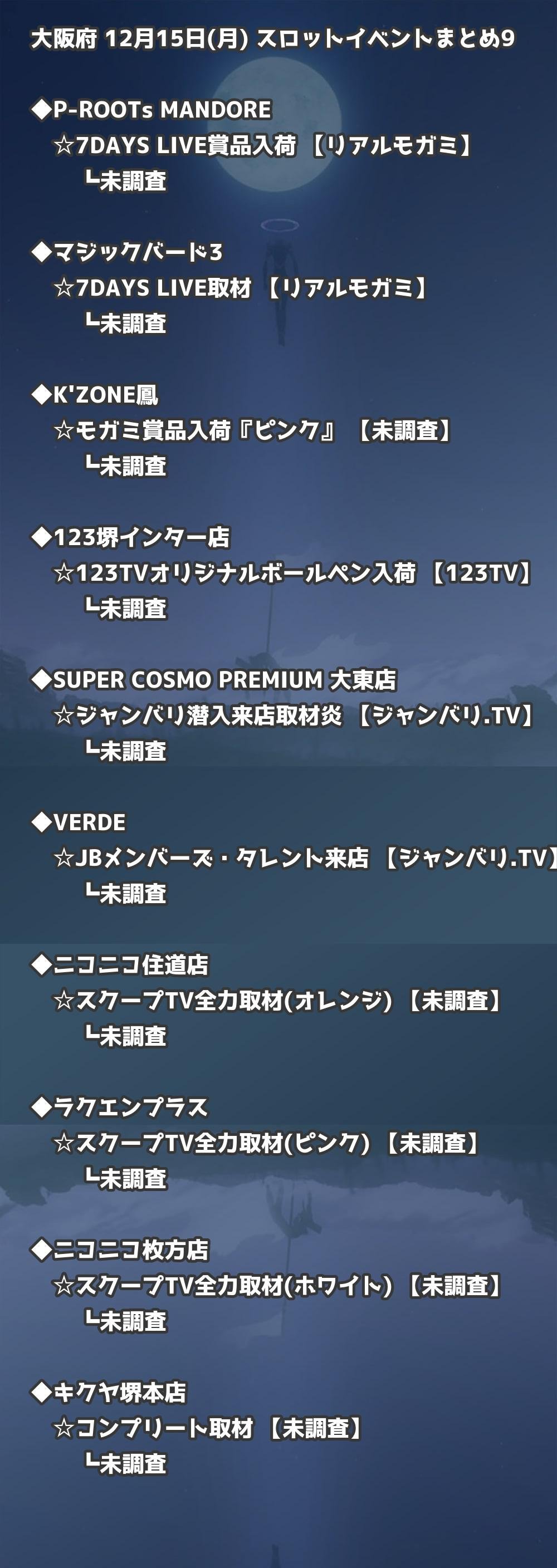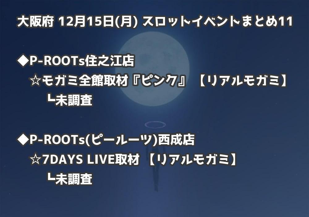 【大阪府】12月15日(月) パチンコホールイベント取材まとめ記事です。