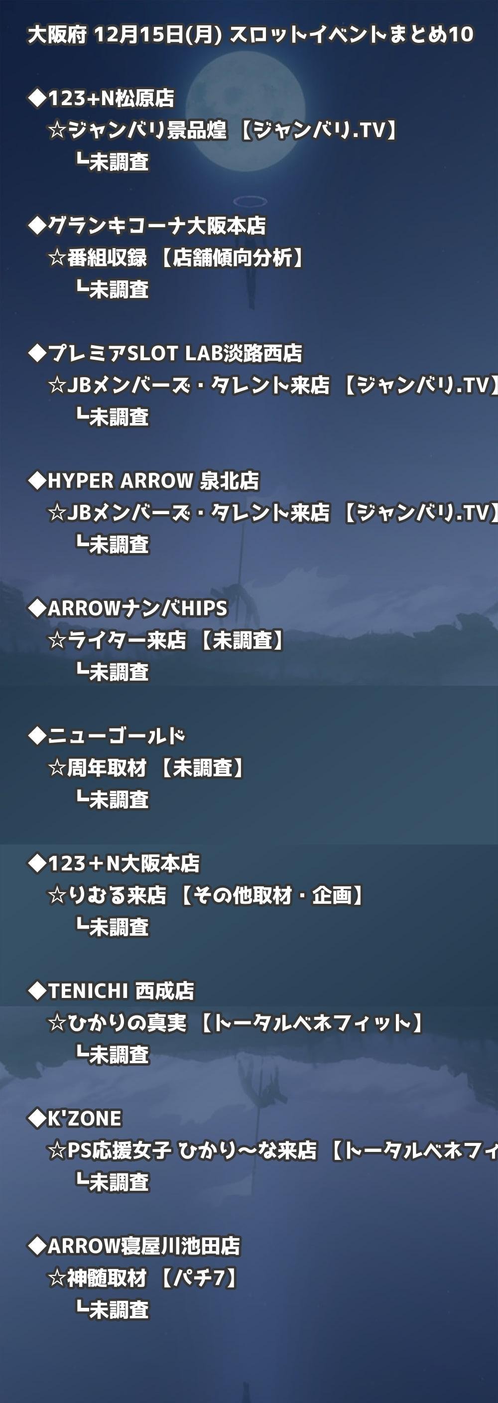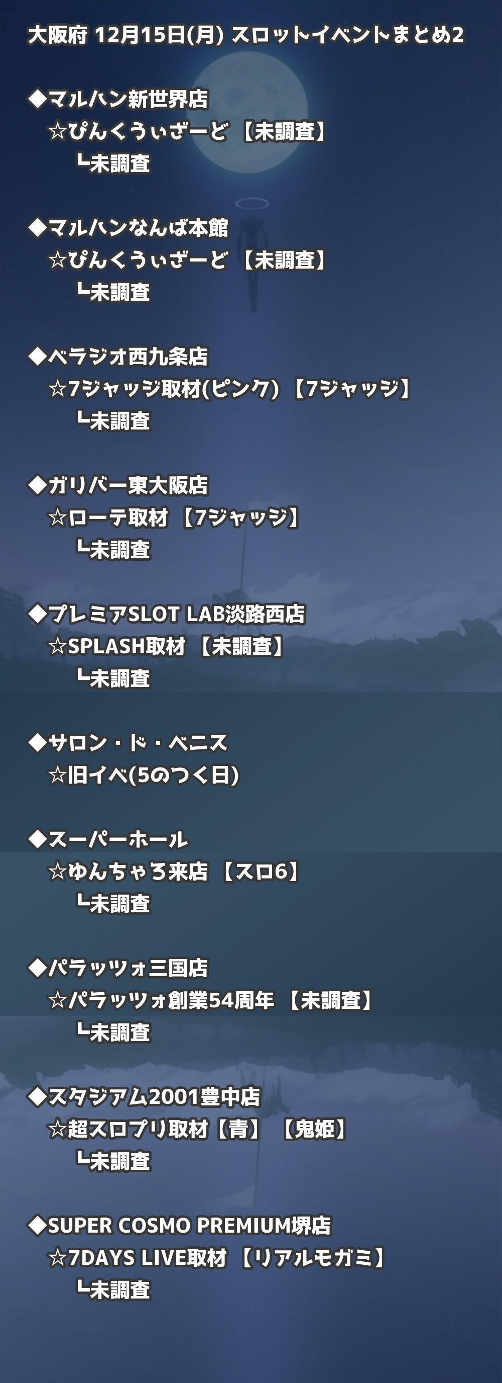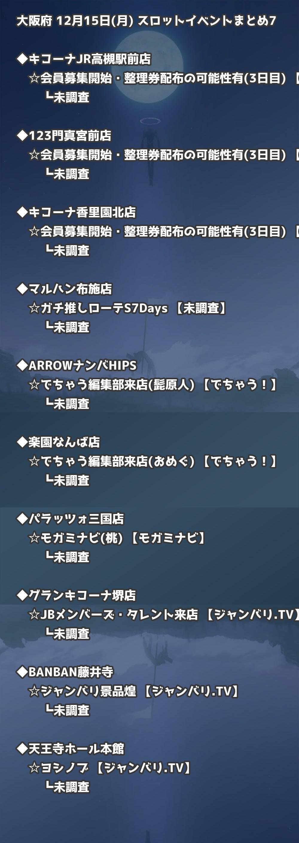 【大阪府】12月15日(月) パチンコホールイベント取材まとめ記事です。