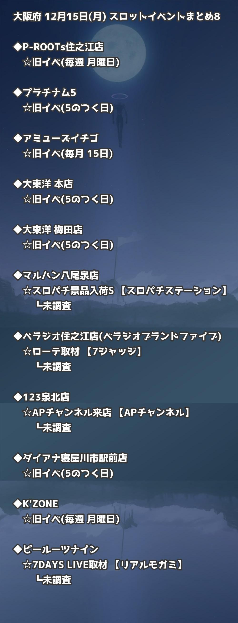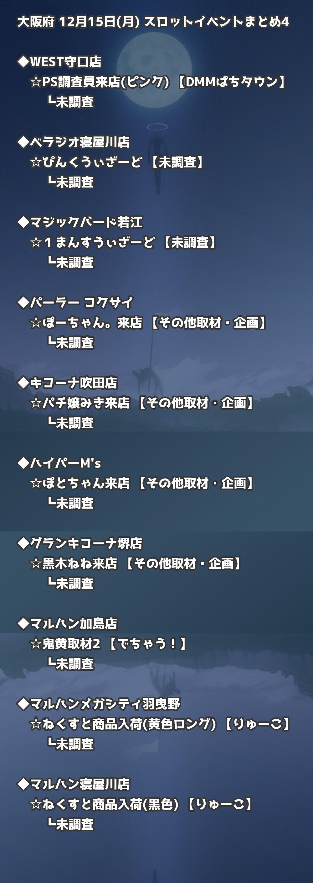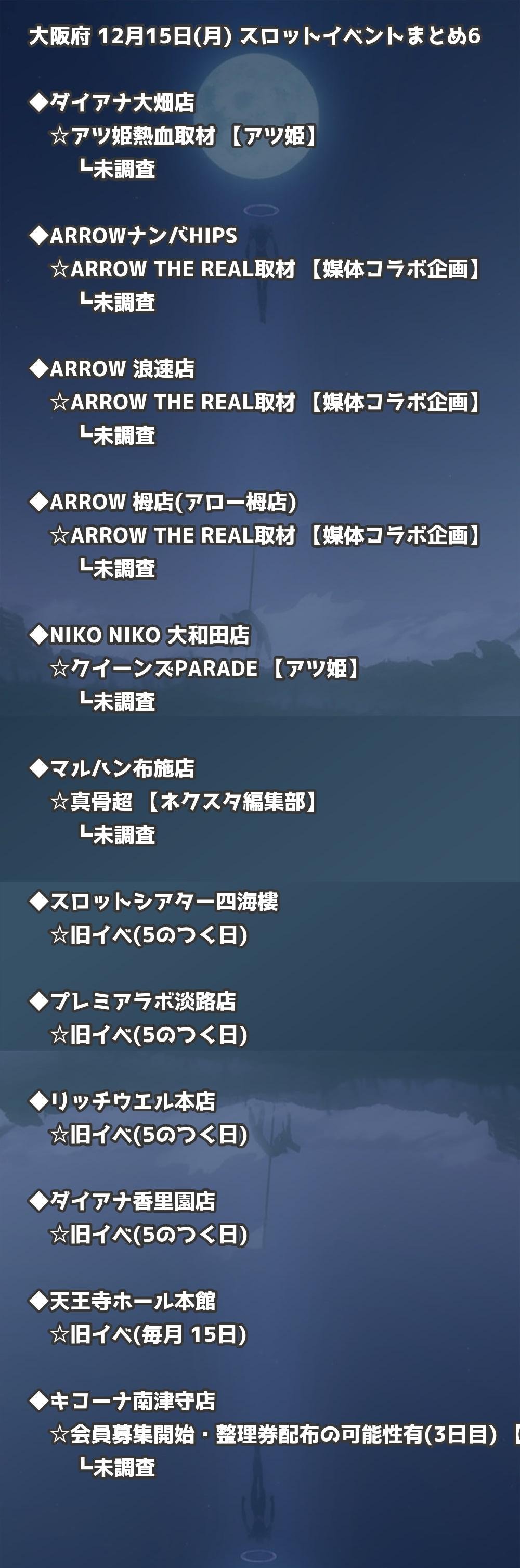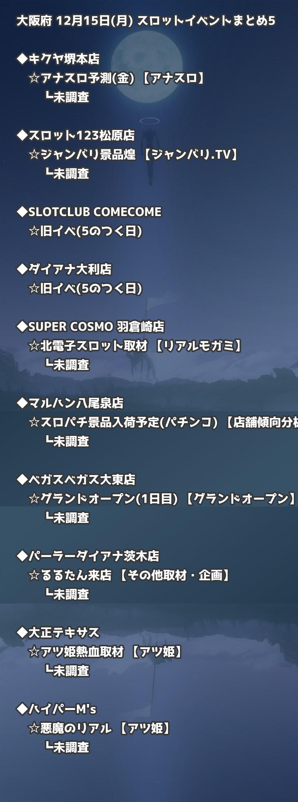 【大阪府】12月15日(月) パチンコホールイベント取材まとめ記事です。