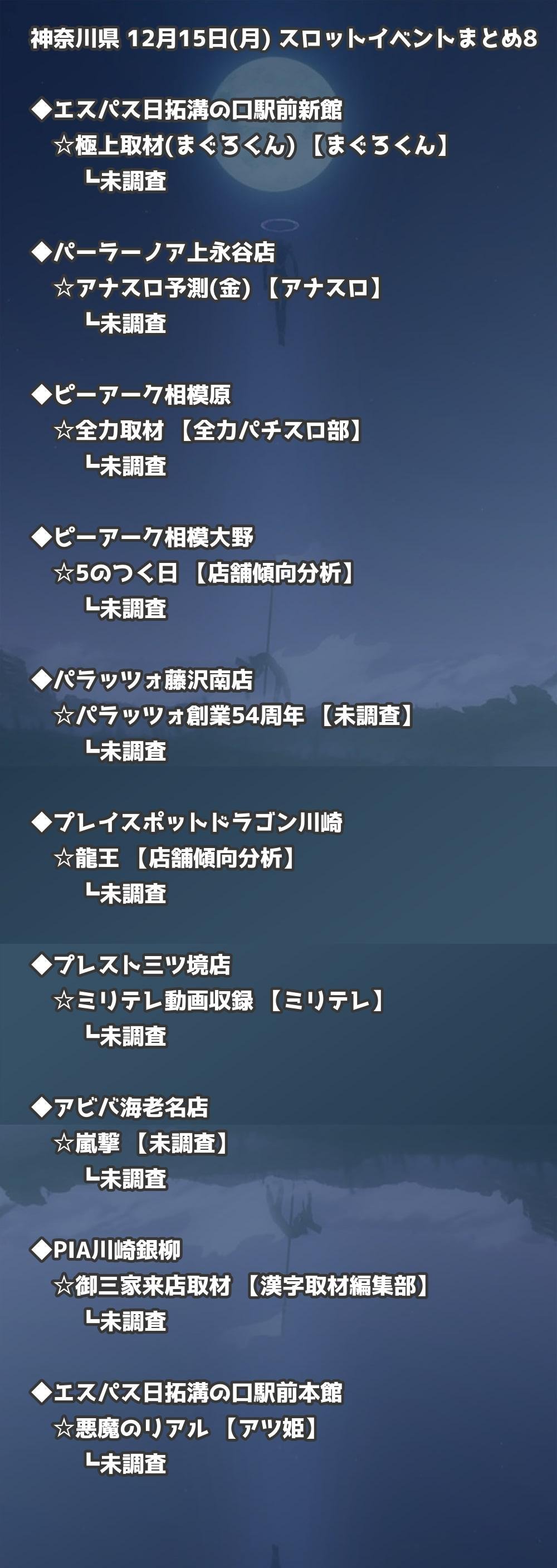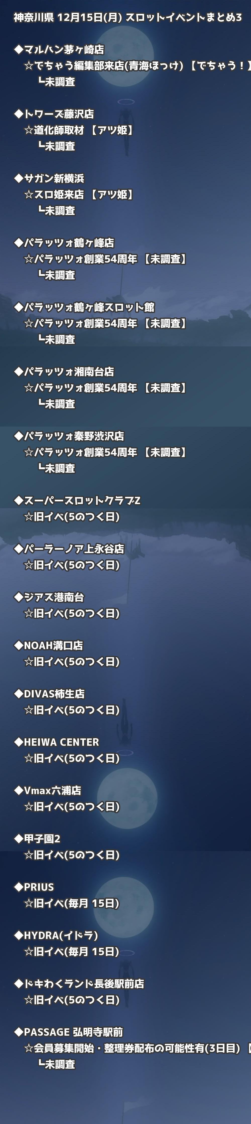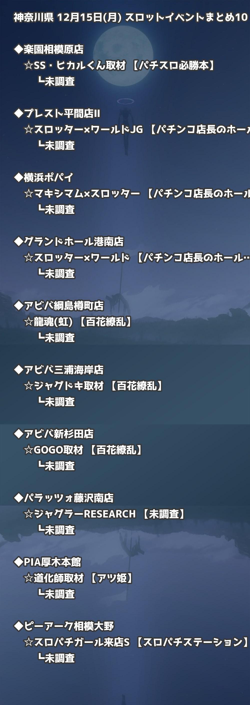 【神奈川県】12月15日(月) パチンコホールイベント取材まとめ記事です。
