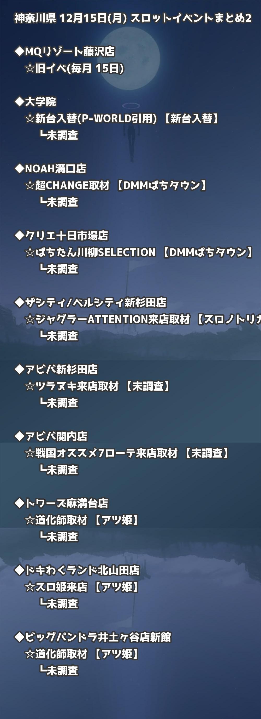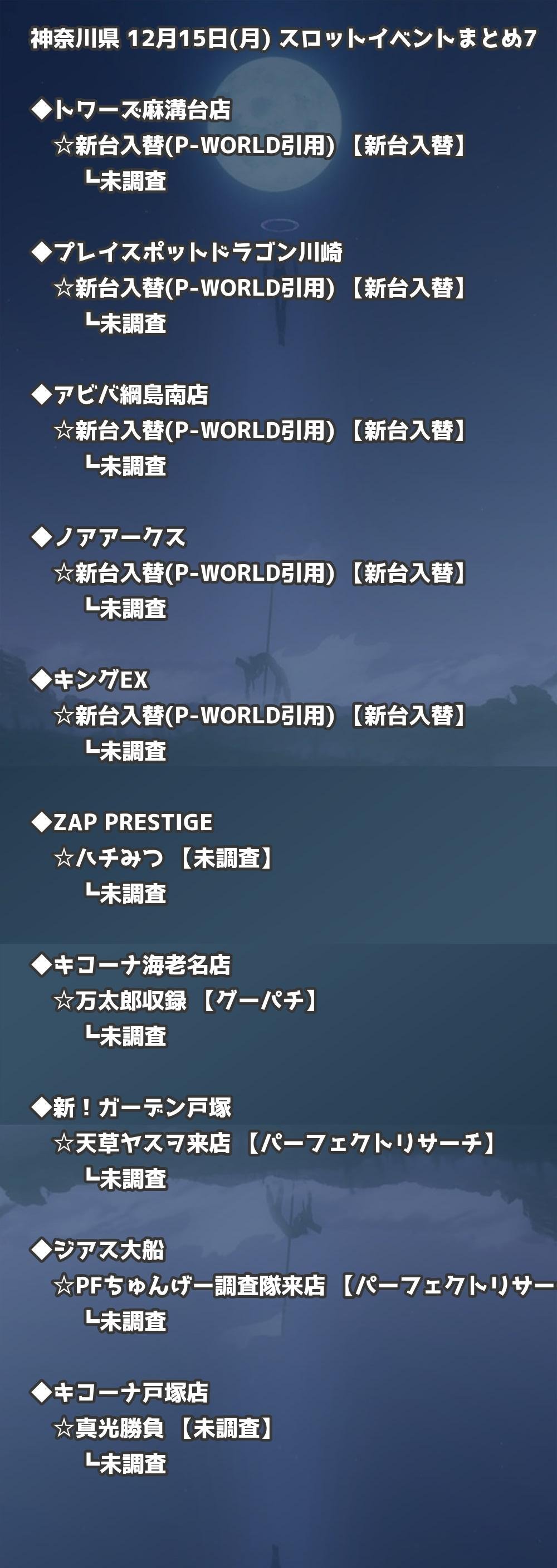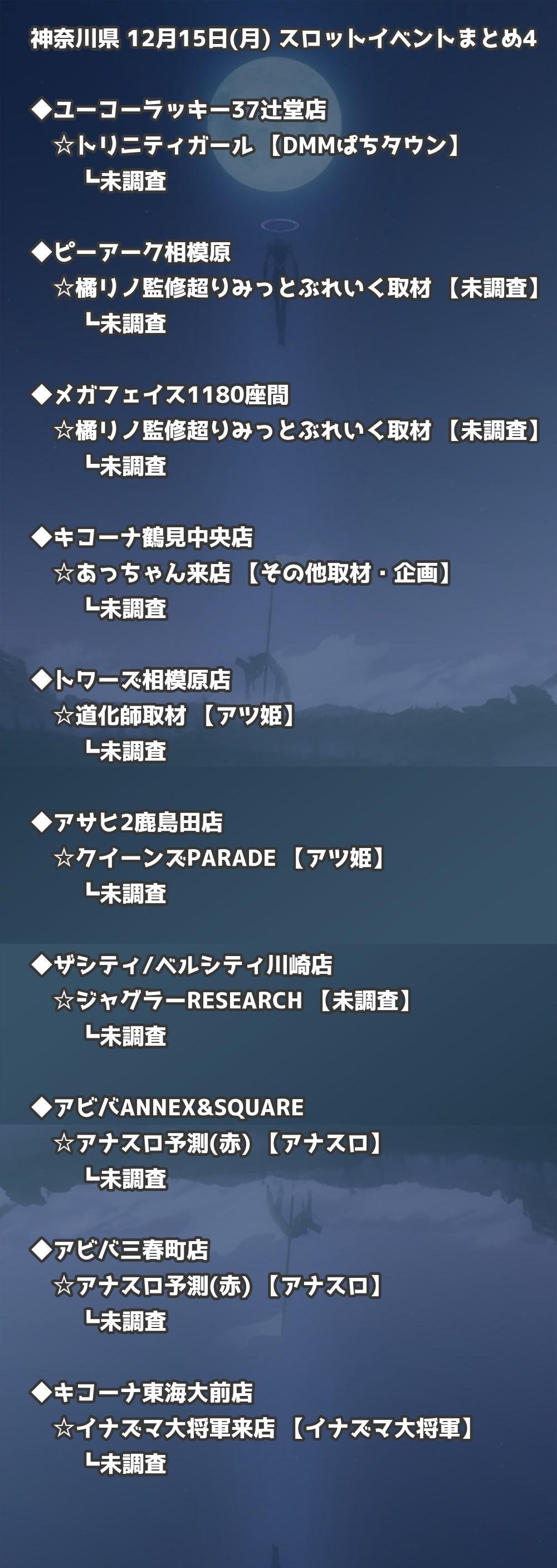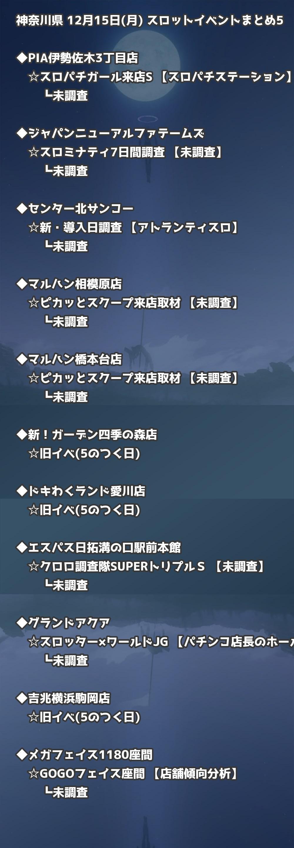 【神奈川県】12月15日(月) パチンコホールイベント取材まとめ記事です。