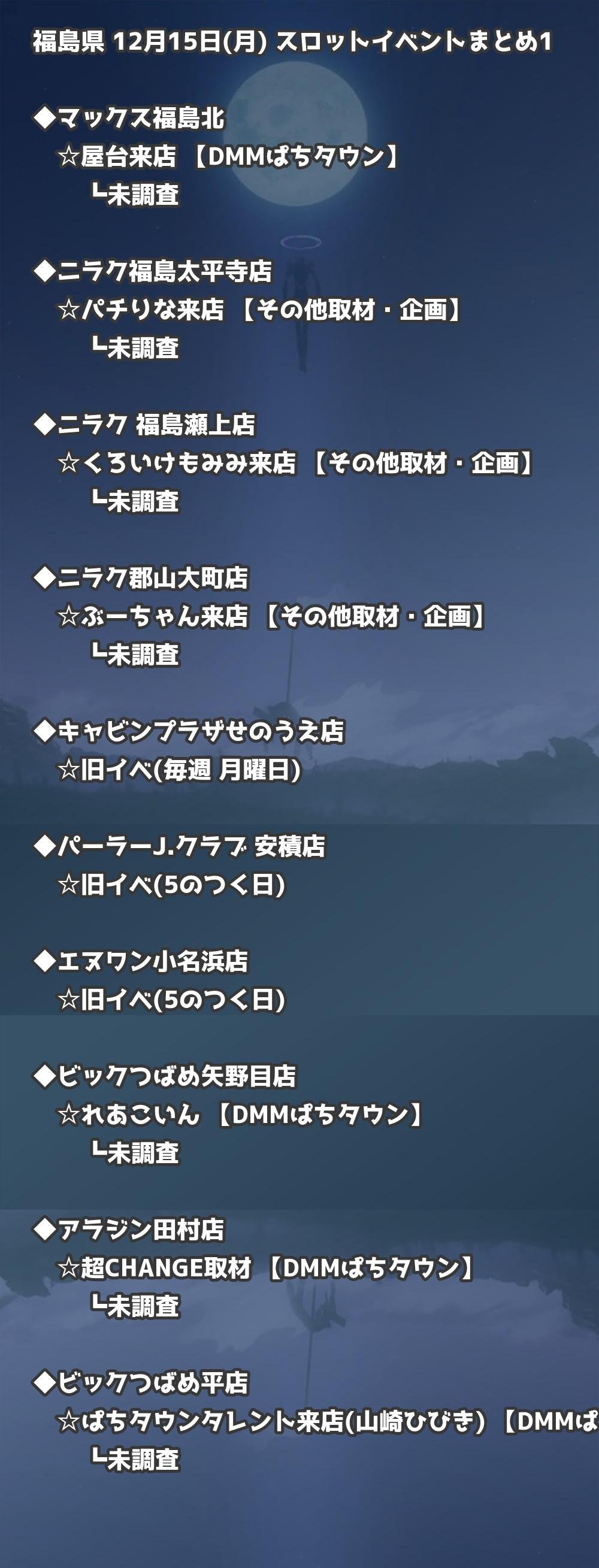 【福島県】12月15日(月) パチンコホールイベント取材まとめ記事です。