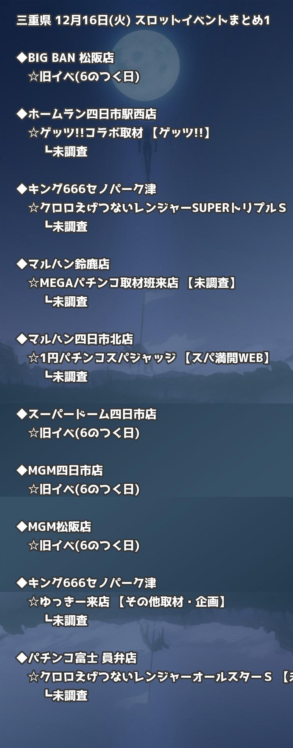 【三重県】12月16日(火) パチンコホールイベント取材まとめ記事です。