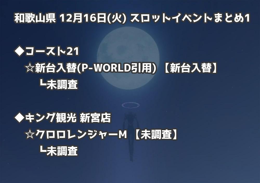 【和歌山県】12月16日(火) パチンコホールイベント取材まとめ記事です。