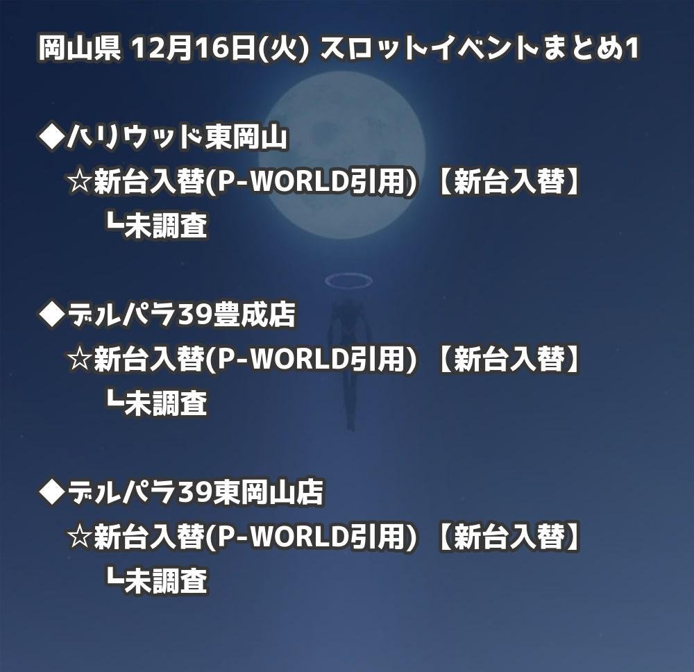 【岡山県】12月16日(火) パチンコホールイベント取材まとめ記事です。