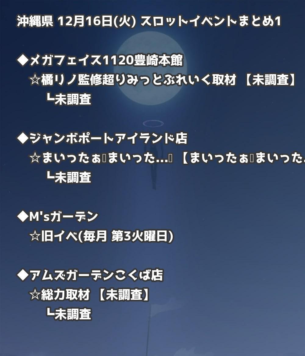 【沖縄県】12月16日(火) パチンコホールイベント取材まとめ記事です。