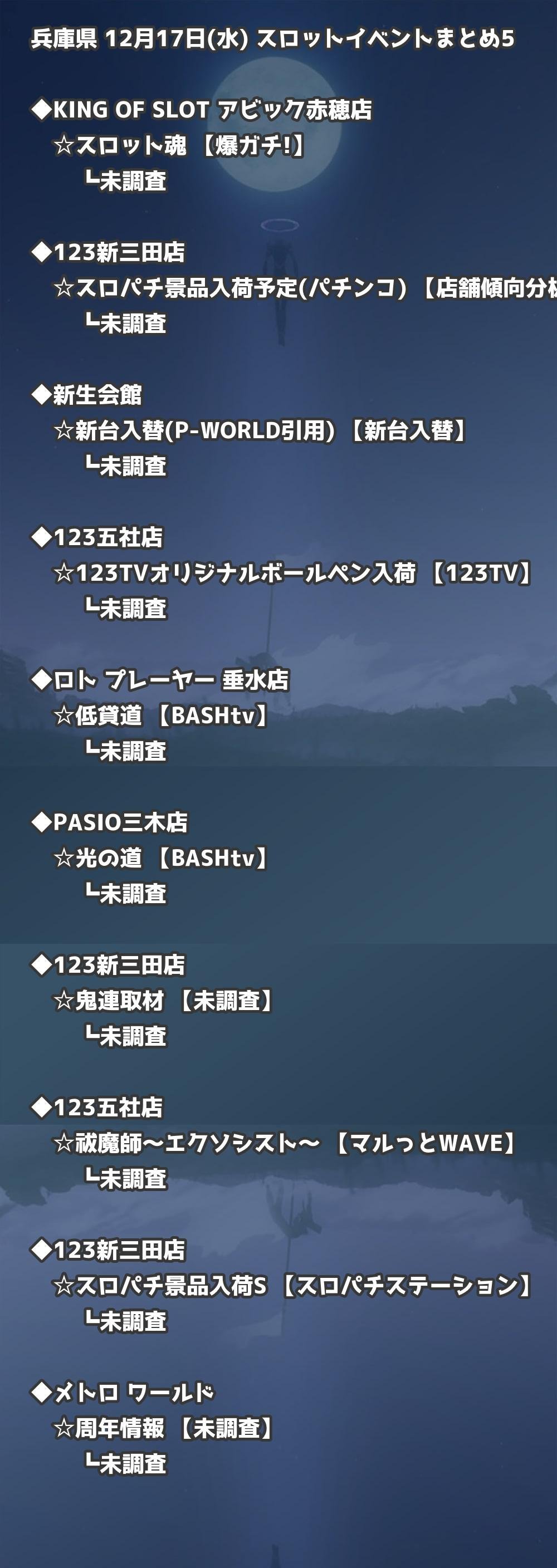 12月17日(水) 兵庫県のTOP20の結果を掲載しています。タップで上位機種など詳細が見れます。