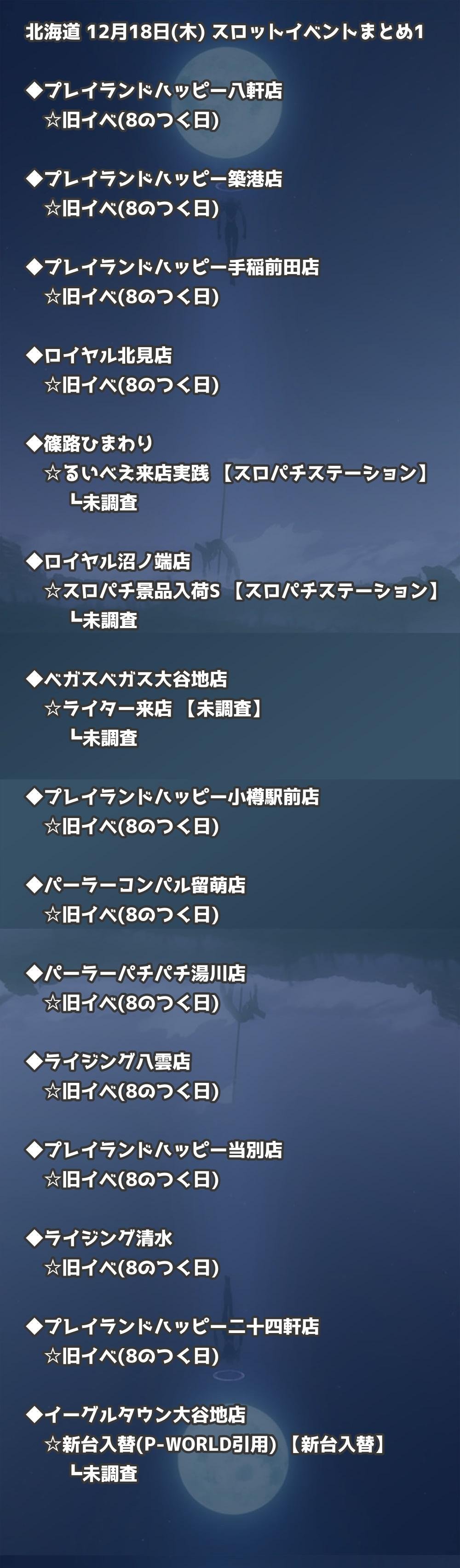 【北海道】12月18日(木) パチンコホールイベント取材まとめ記事です。