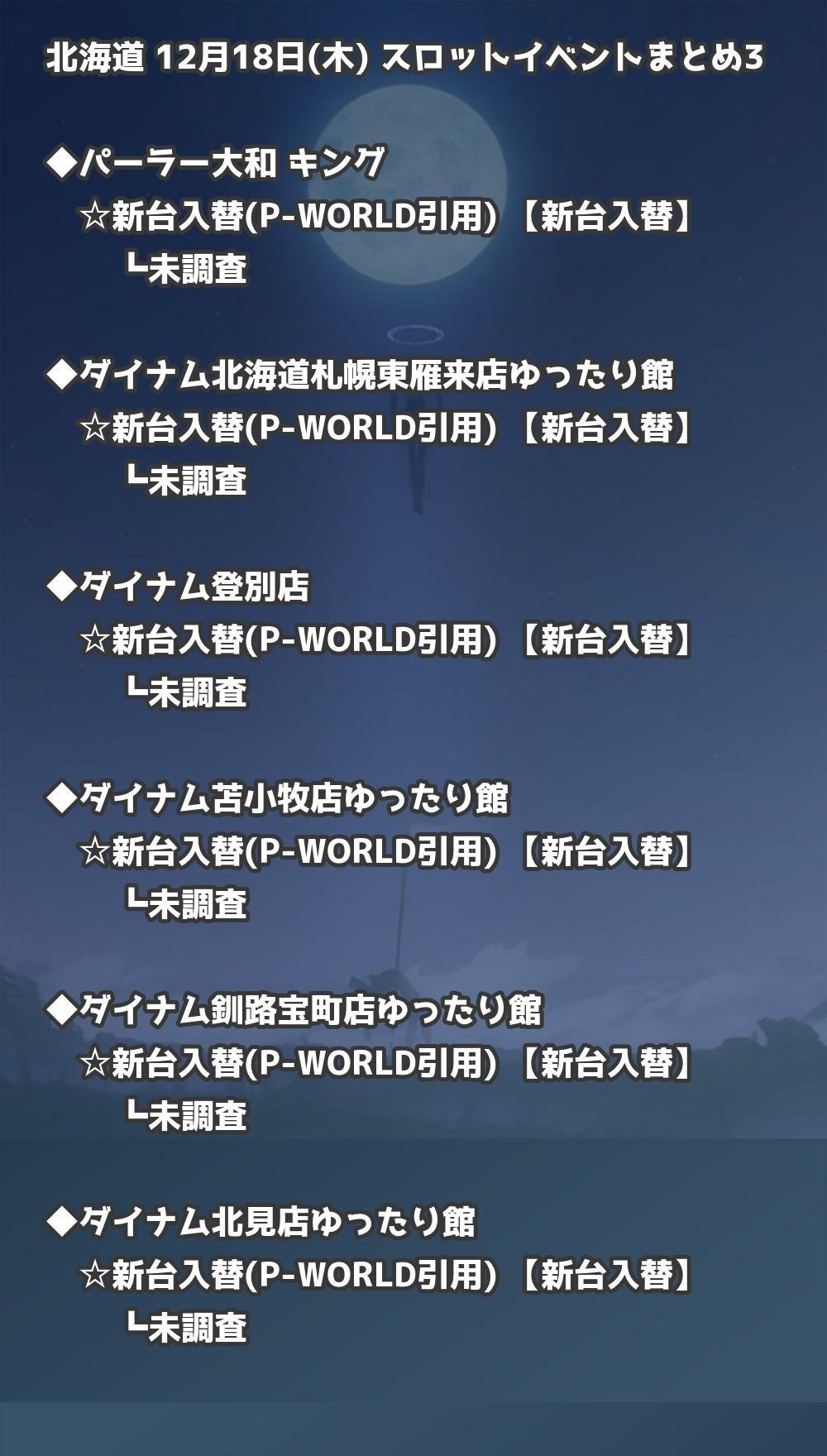 📊 北海道 12月18日(木) 勝てるパチンコ・スロット取材店舗一覧|おすすめ順