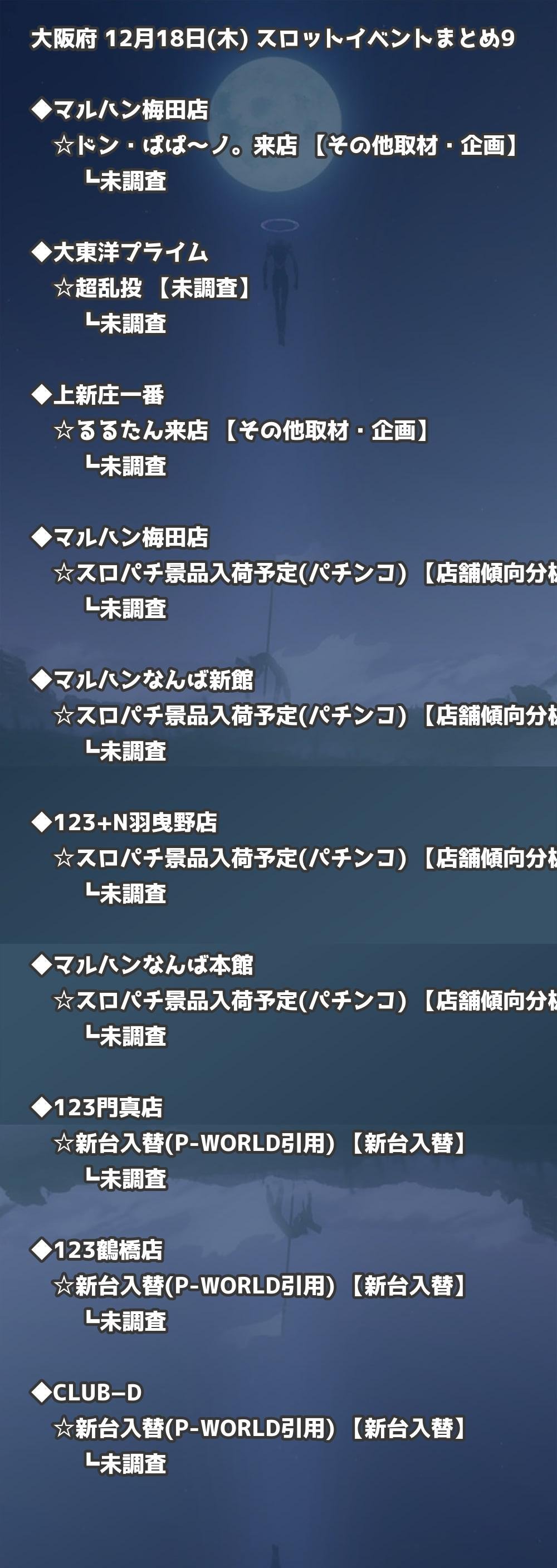 【大阪府】12月18日(木) パチンコホールイベント取材まとめ記事です。