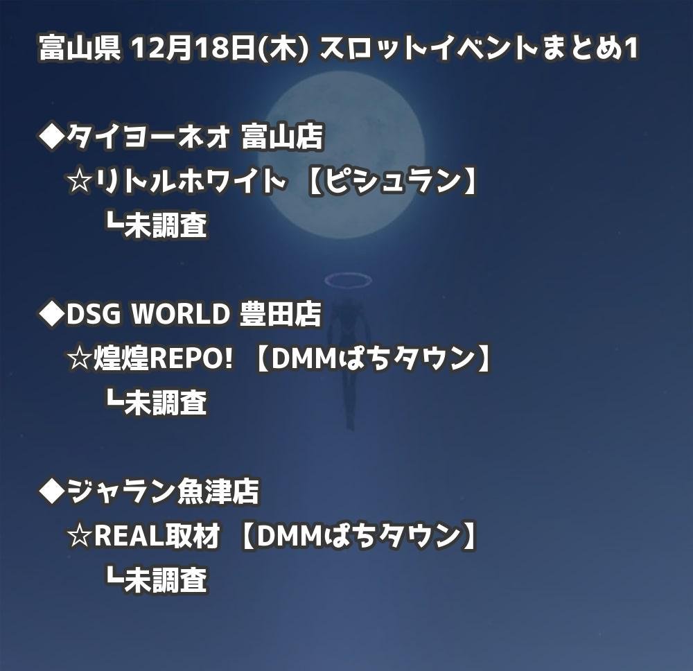 【富山県】12月18日(木) パチンコホールイベント取材まとめ記事です。
