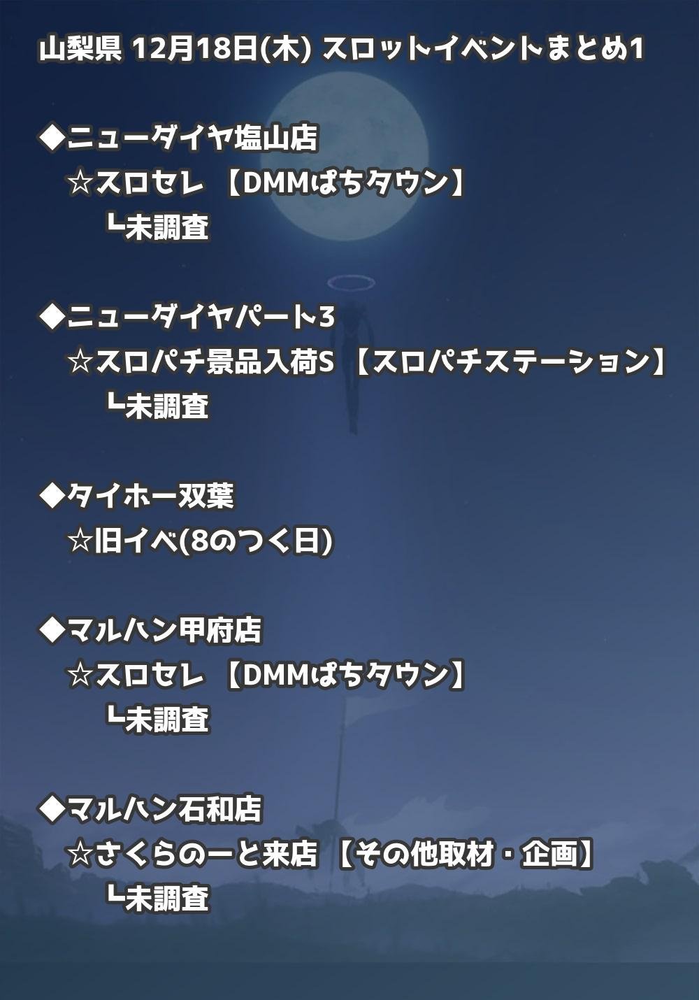 【山梨県】12月18日(木) パチンコホールイベント取材まとめ記事です。