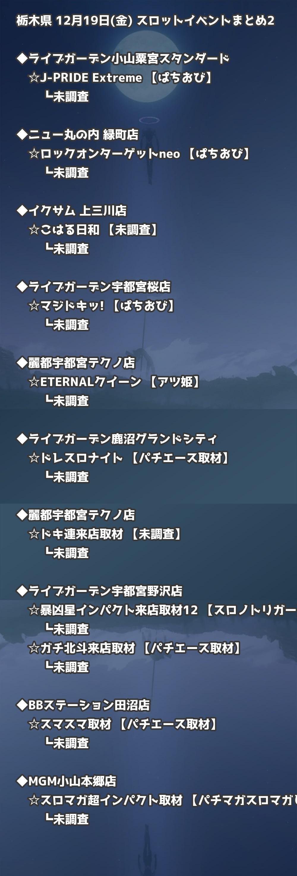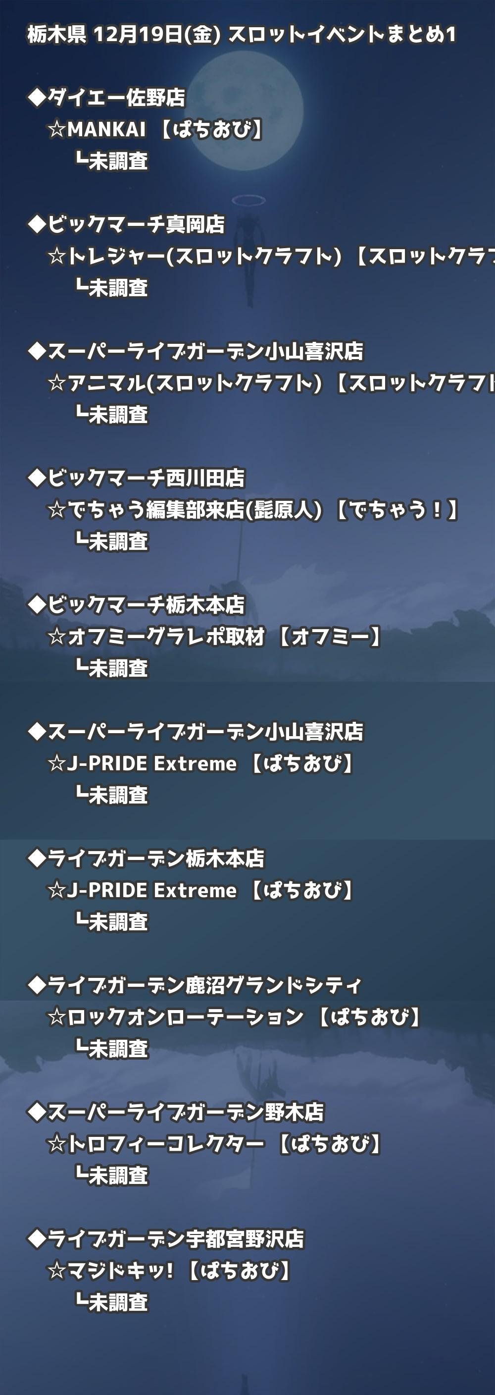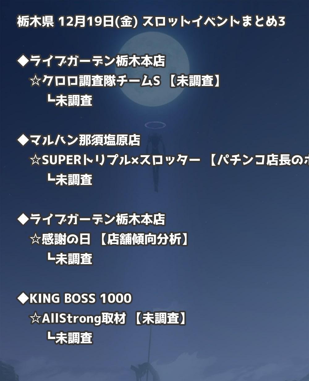 【栃木県】12月19日(金) パチンコホールイベント取材まとめ記事です。