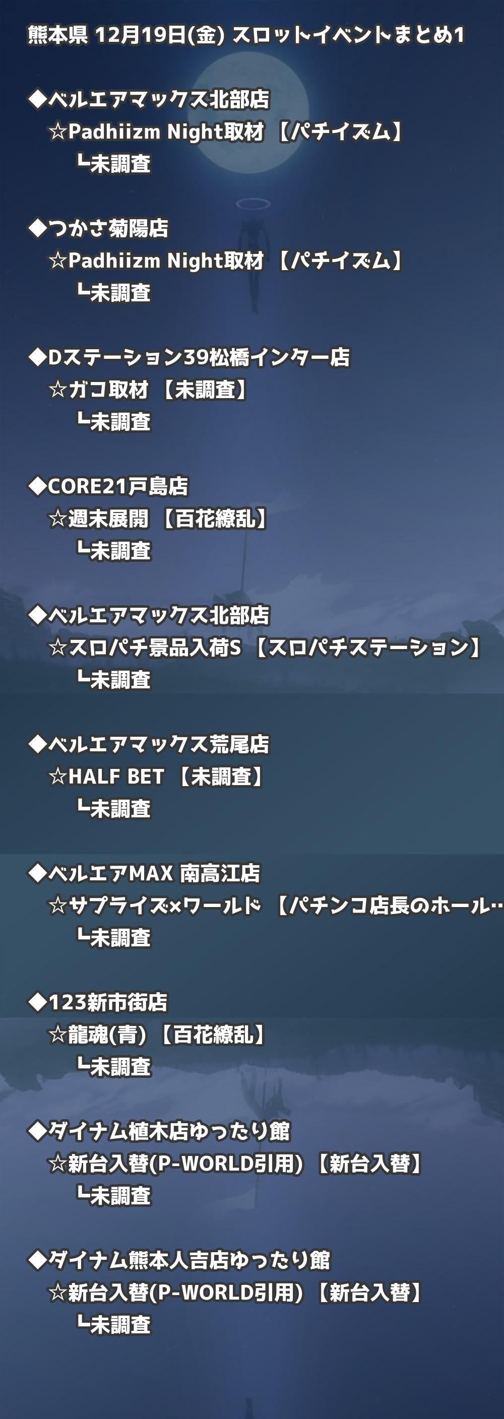 【熊本県】12月19日(金) パチンコホールイベント取材まとめ記事です。