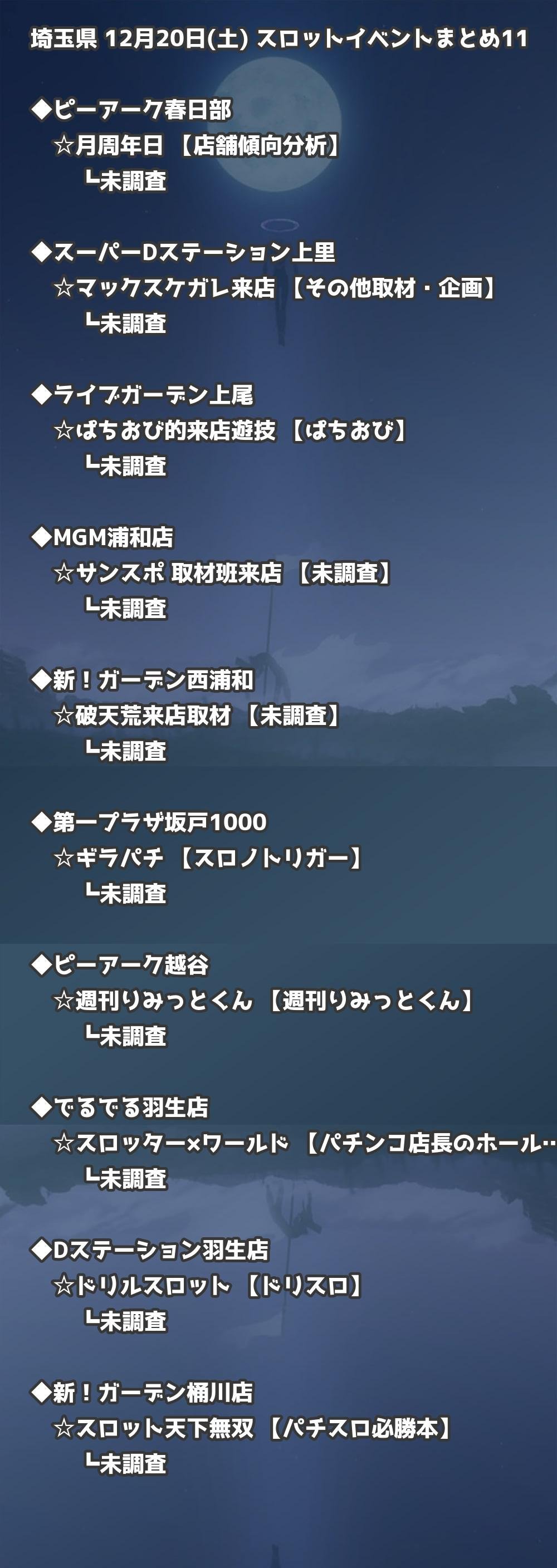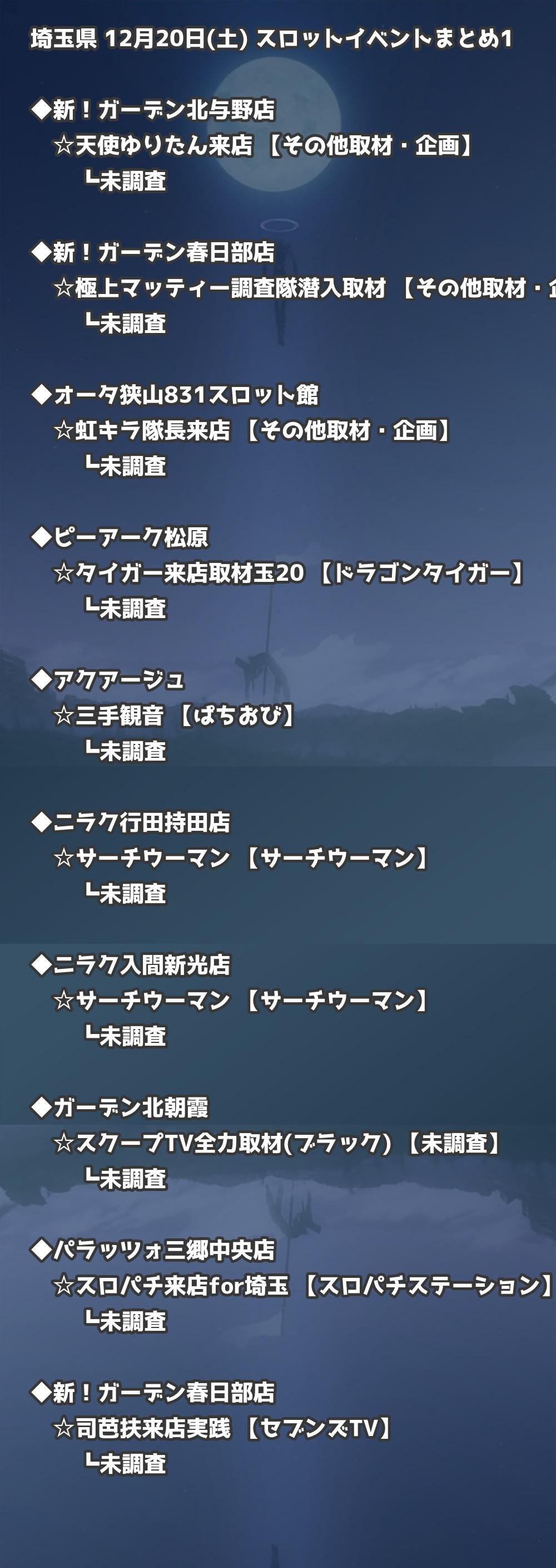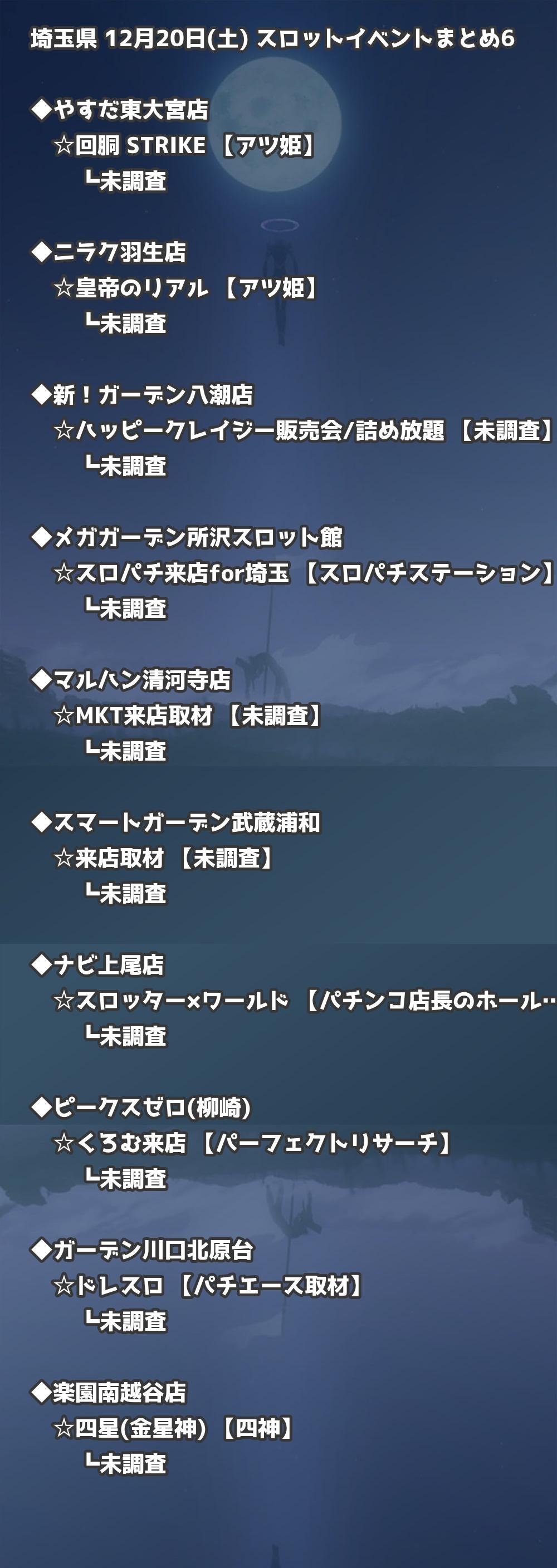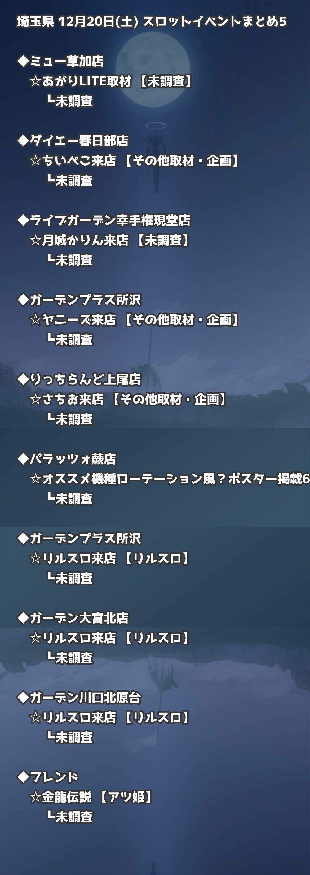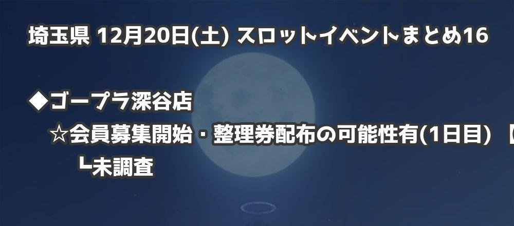 【埼玉県】12月20日(土) パチンコホールイベント取材まとめ記事です。