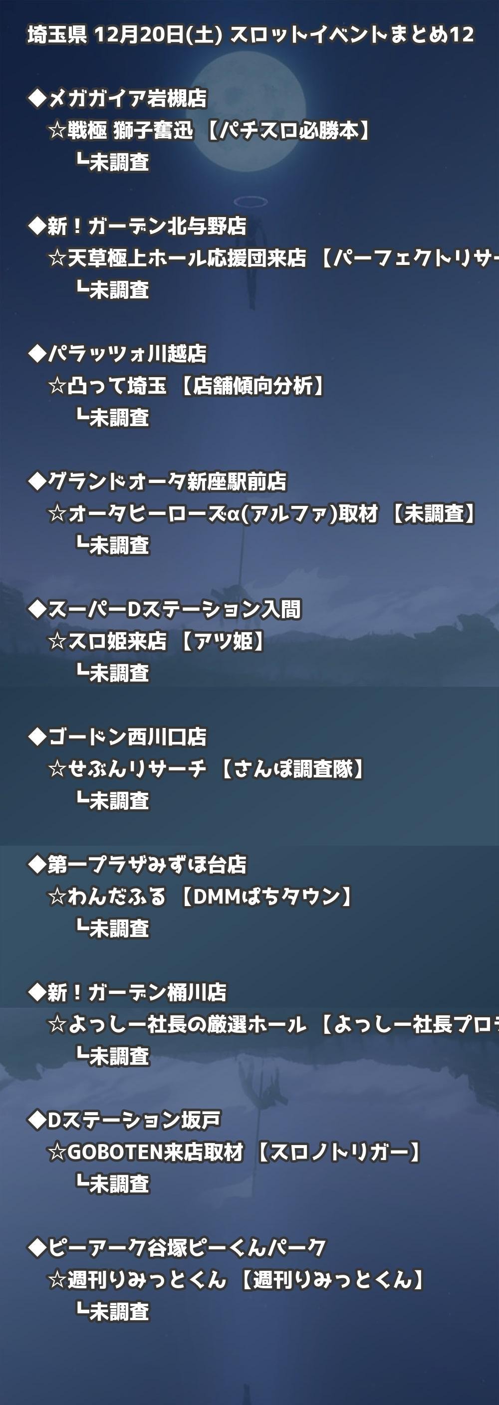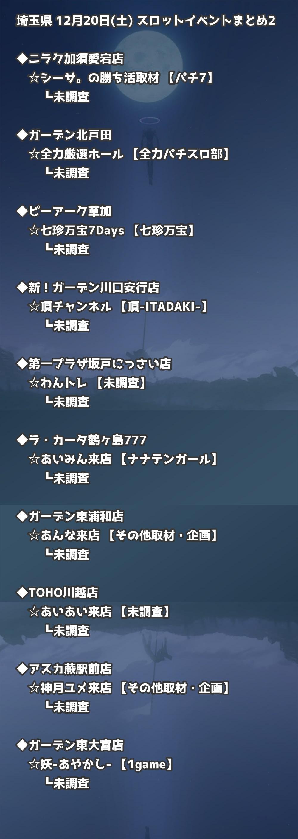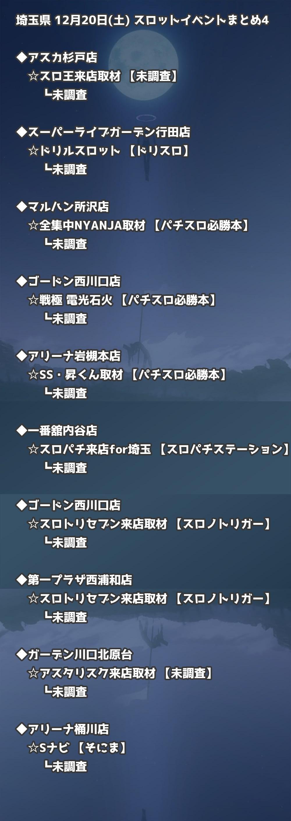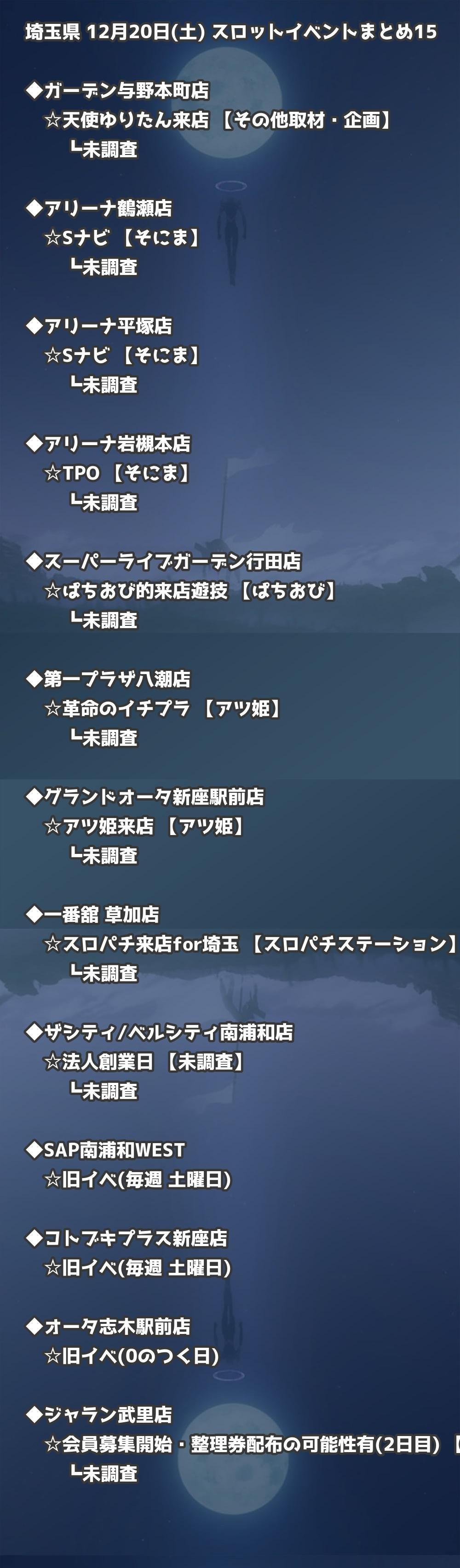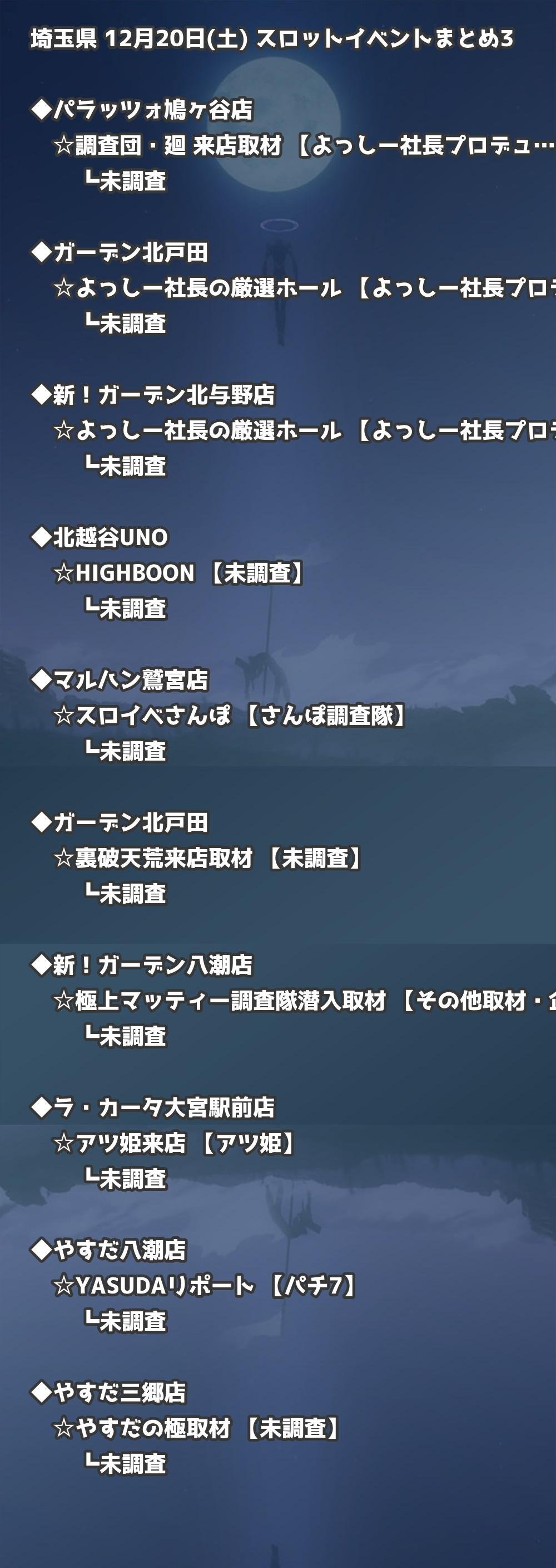 【埼玉県】12月20日(土) パチンコホールイベント取材まとめ記事です。