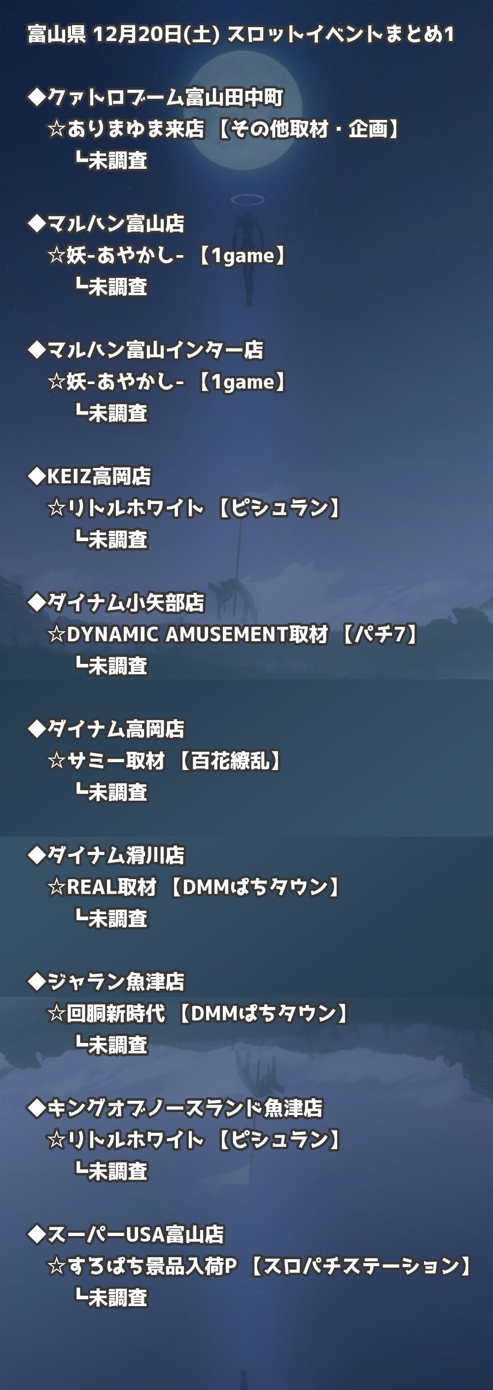 【富山県】12月20日(土) パチンコホールイベント取材まとめ記事です。