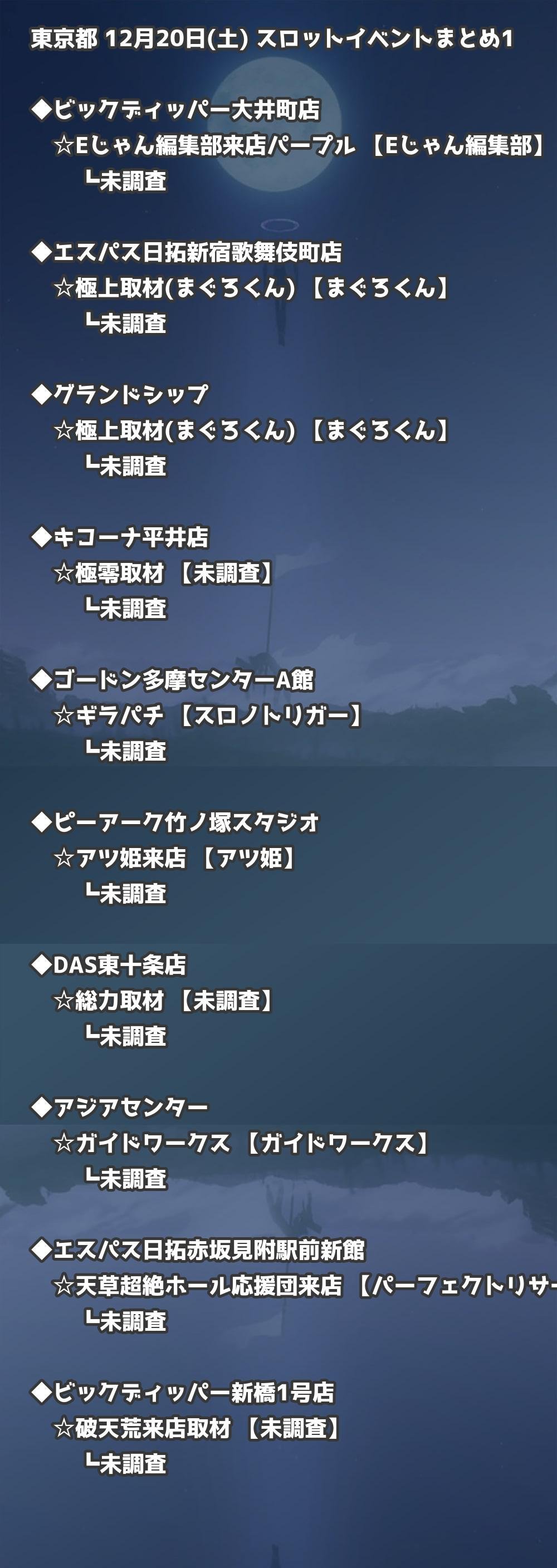 📊 東京都 12月20日(土) 勝てるパチンコ・スロット取材店舗一覧|おすすめ順