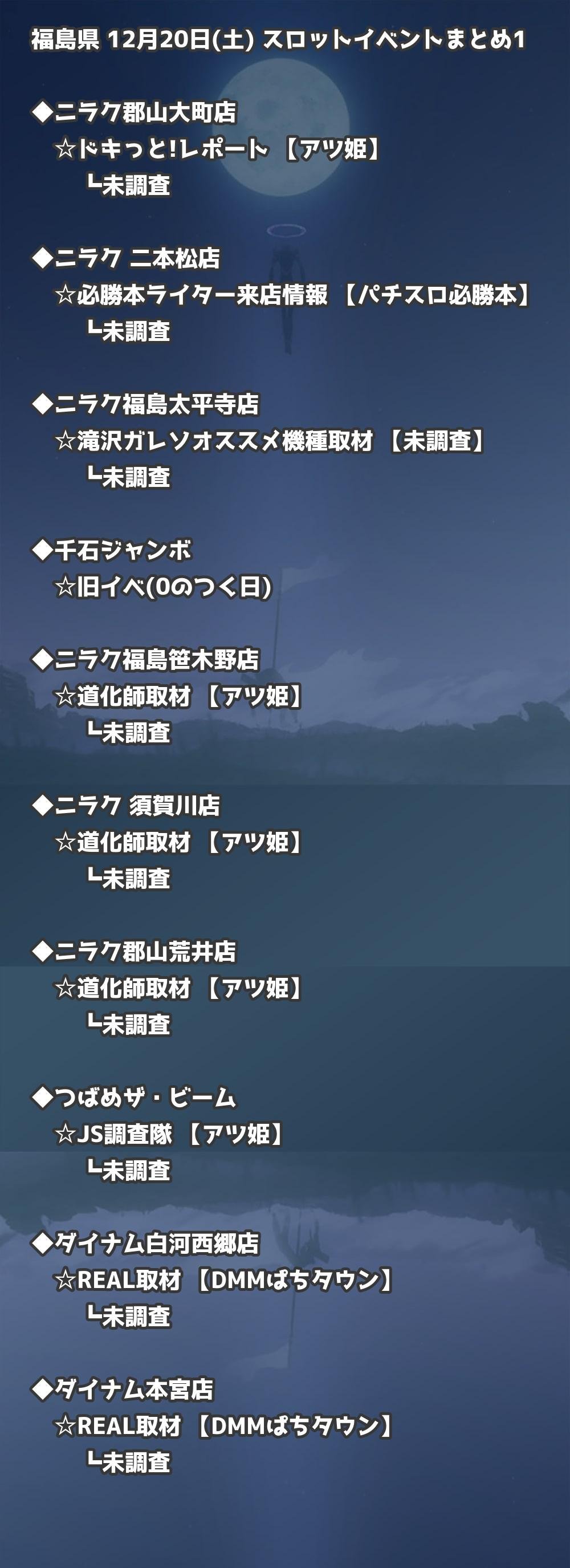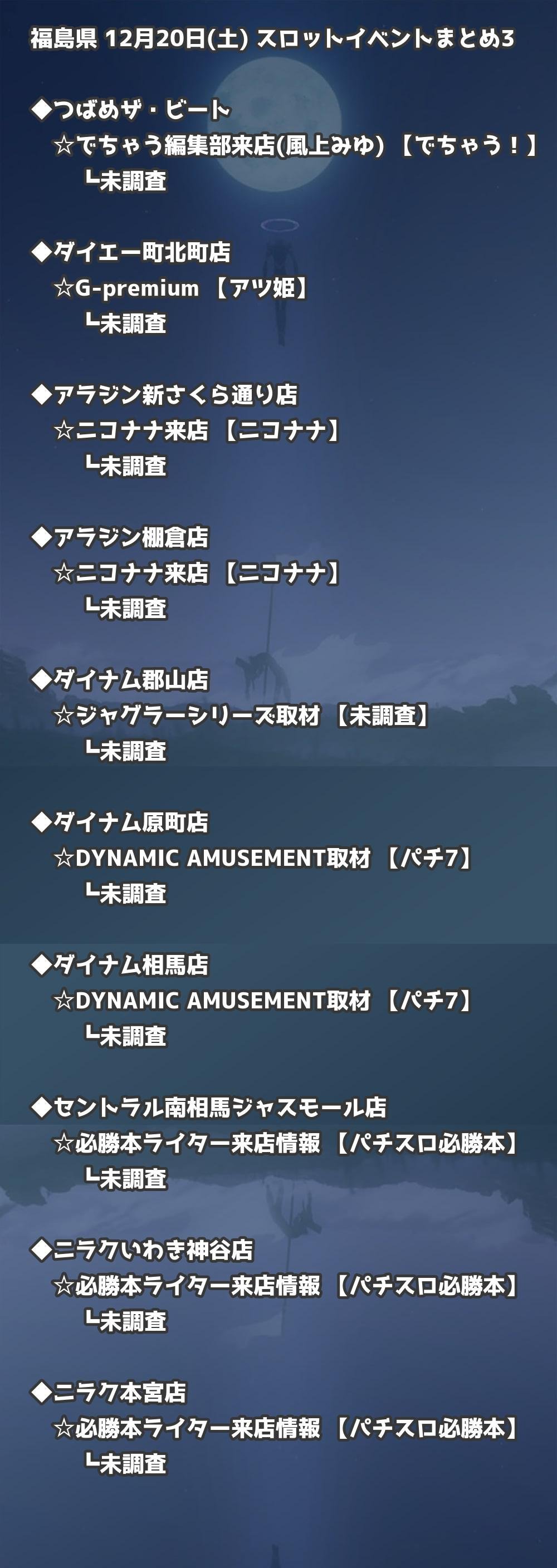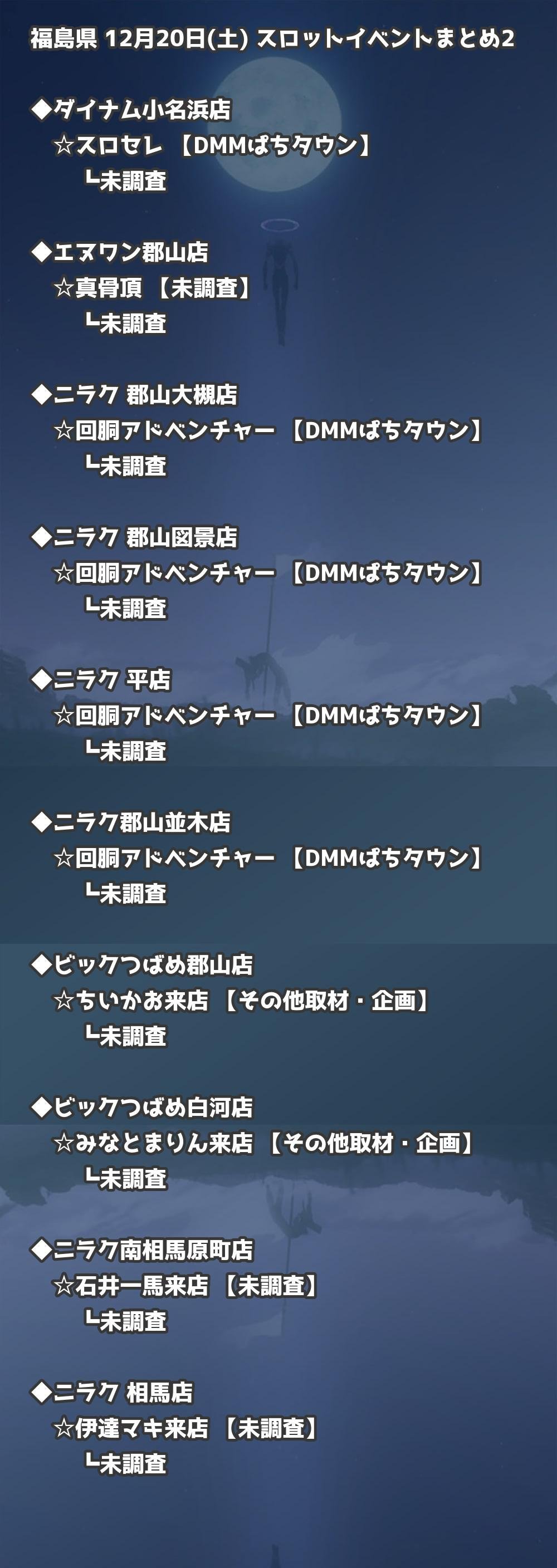 【福島県】12月20日(土) パチンコホールイベント取材まとめ記事です。